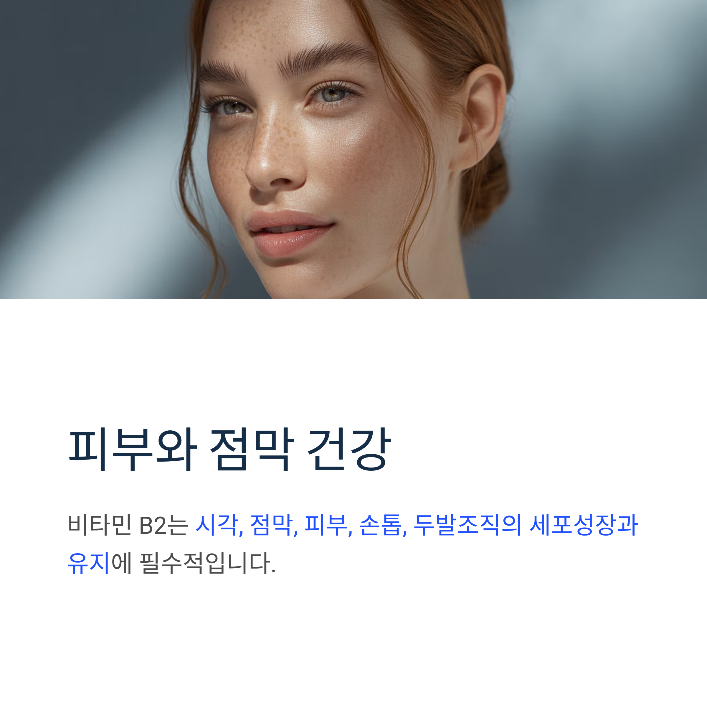 특히 비타민 B2는 시각, 점막, 피부, 손톱, 두발조직의 세포성장과 유지에 필수적인 성분입니다.