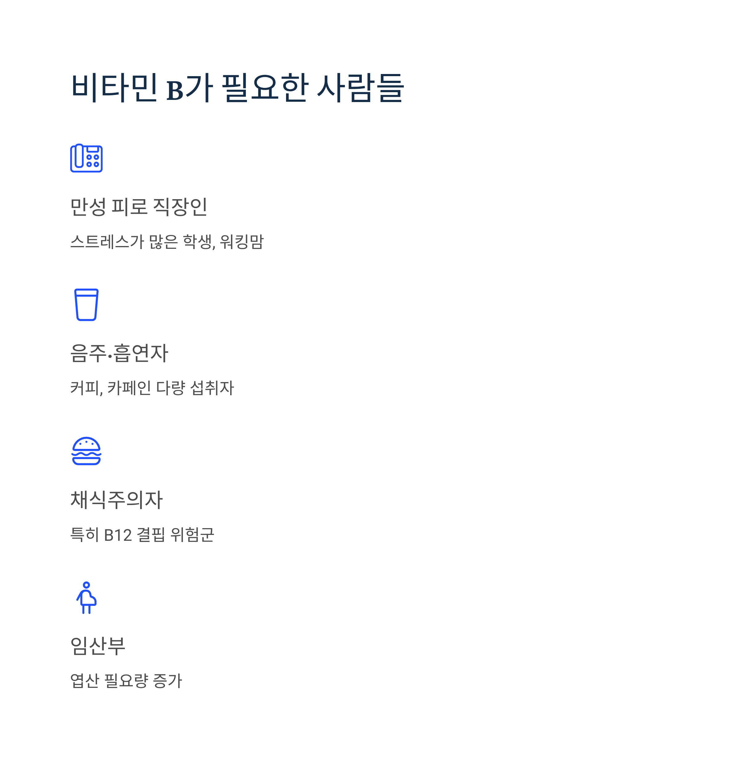 특히 다음과 같은 분들에게 비타민 B 보충이 권장됩니다: