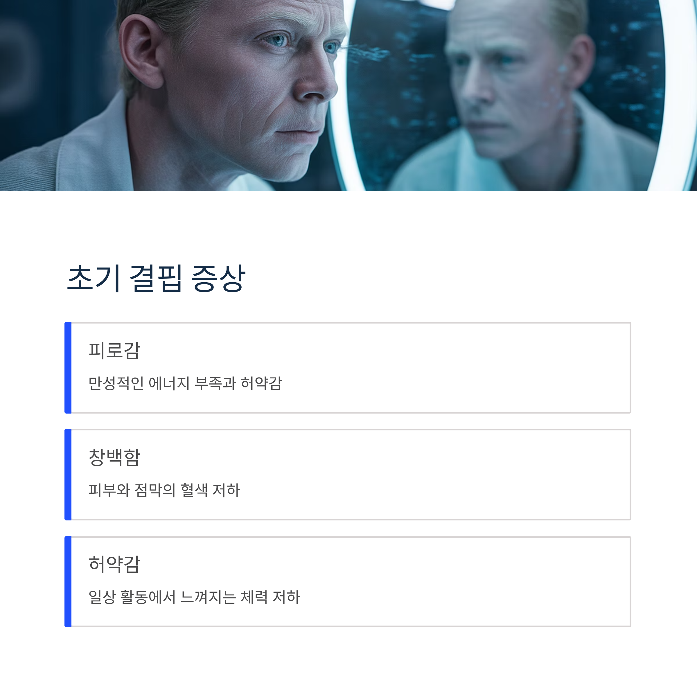 비타민 B12가 부족하면 초기에는 피로감, 창백함, 허약감이 나타납니다. 이를 방치하면 거대적아구성 빈혈이 발생하며, 숨가쁨과 심장 두근거림, 어지럼증이 동반됩니다. 더 심각한 것은 신경계 손상입니다. 손과 발의 저림이나 무감각, 근육 쇠약, 보행 곤란이 나타나며 심하면 기억력 감퇴, 착란, 치매 증상까지 이어질 수 있습니다.
