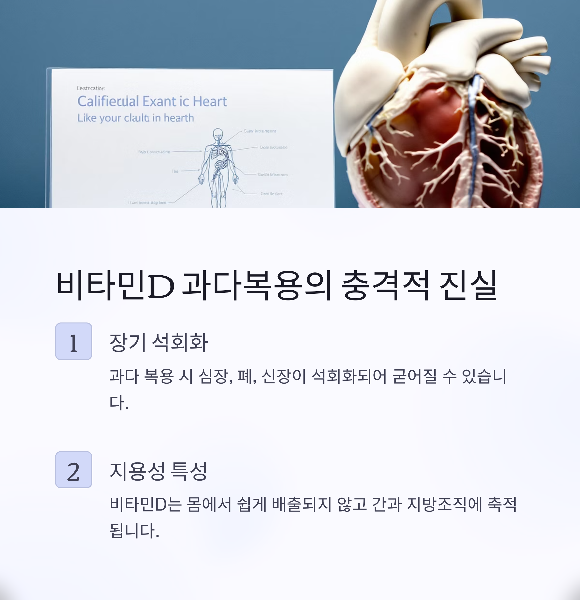 건강한 뼈와 간을 위해 시작한 비타민D 복용이 오히려 심장, 폐, 신장을 위험에 빠뜨리지 않도록, 오늘부터라도 올바른 복용법을 실천해보시기 바랍니다.