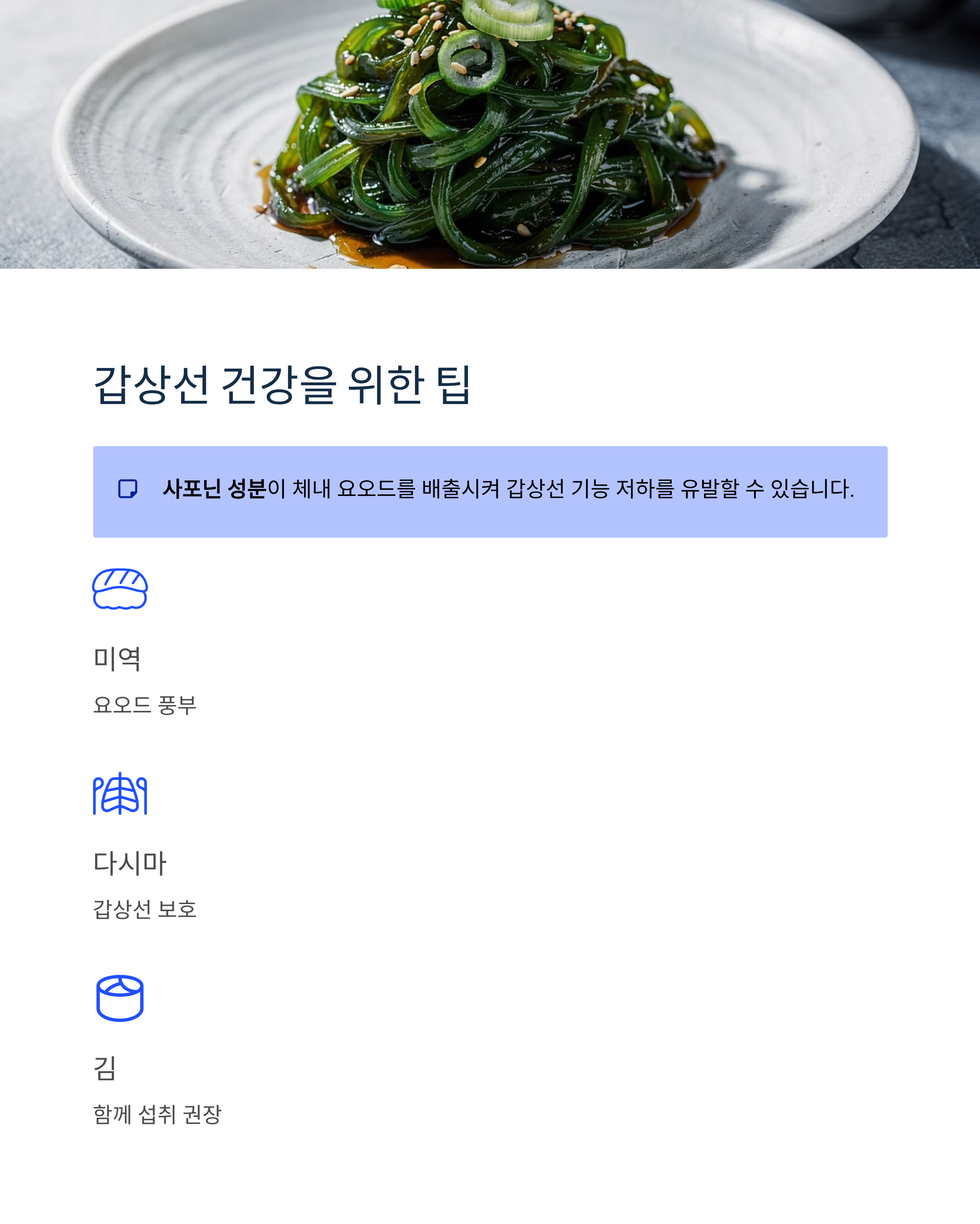 서리태의 사포닌 성분은 체내 요오드를 배출시켜 갑상선 기능 저하를 유발할 수 있습니다. 따라서 미역, 다시마, 김 등 요오드가 풍부한 해조류와 함께 섭취하는 것을 권장합니다.