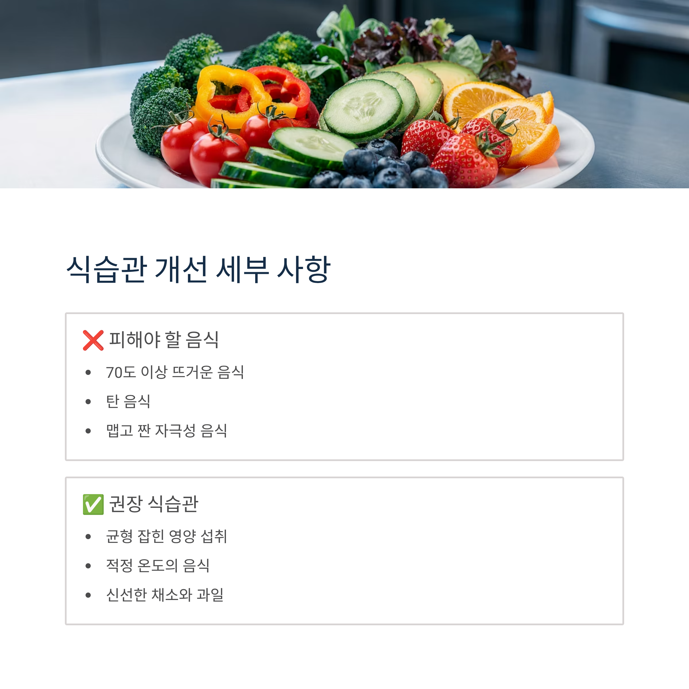 - 70도 이상 뜨거운 음식 피하기