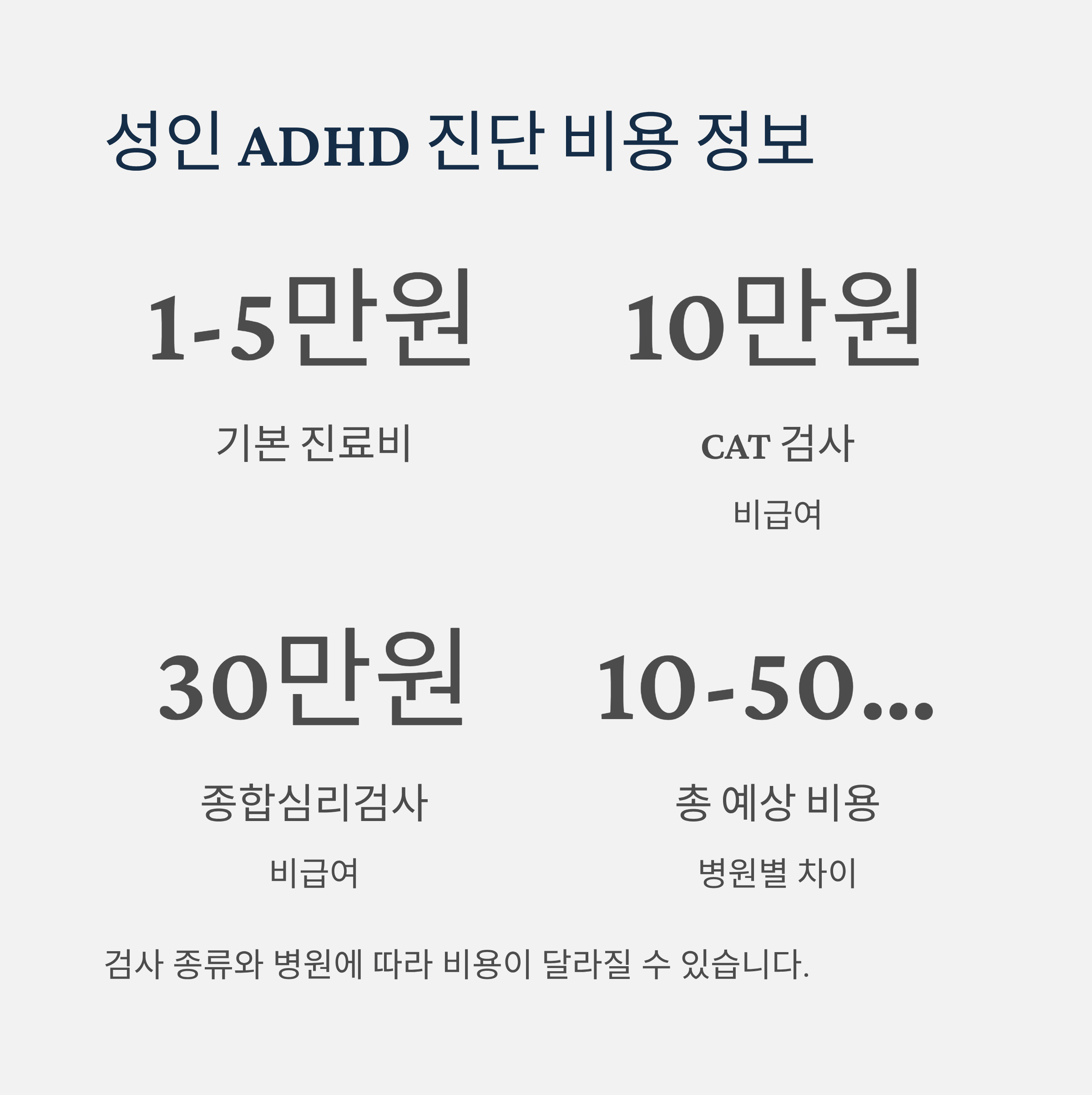 성인 ADHD 병원 검사 비용 정보