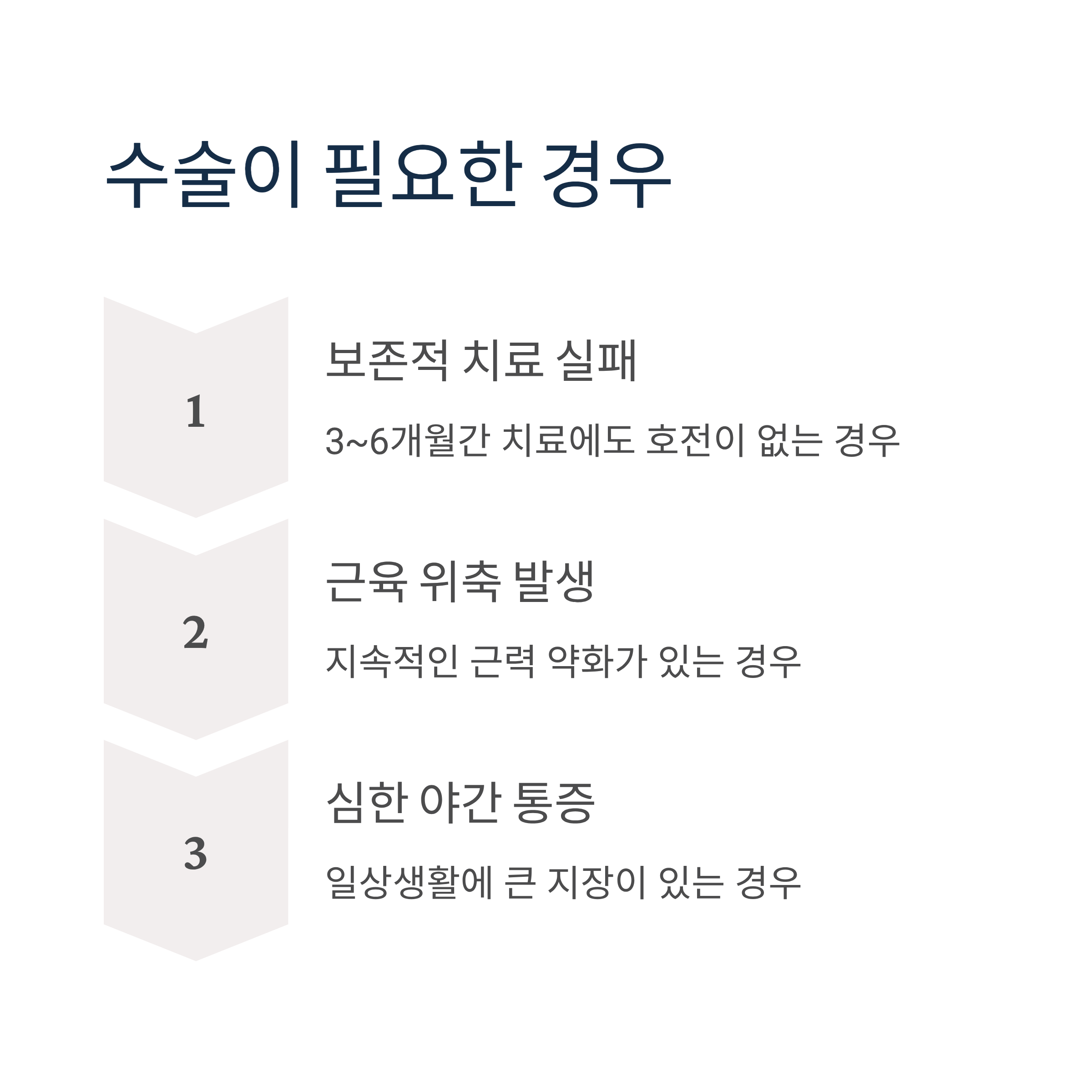 증상이 가볍고 근육 위축이 없는 초기에는 비수술적 치료가 가능합니다.
