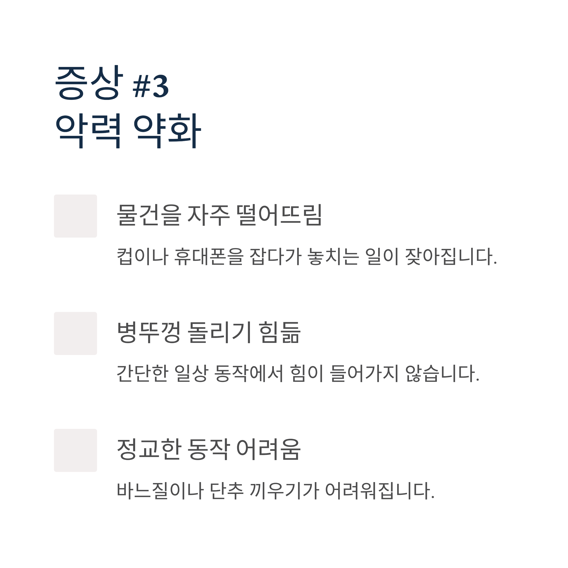 3. 악력 약화 및 정교한 동작 어려움