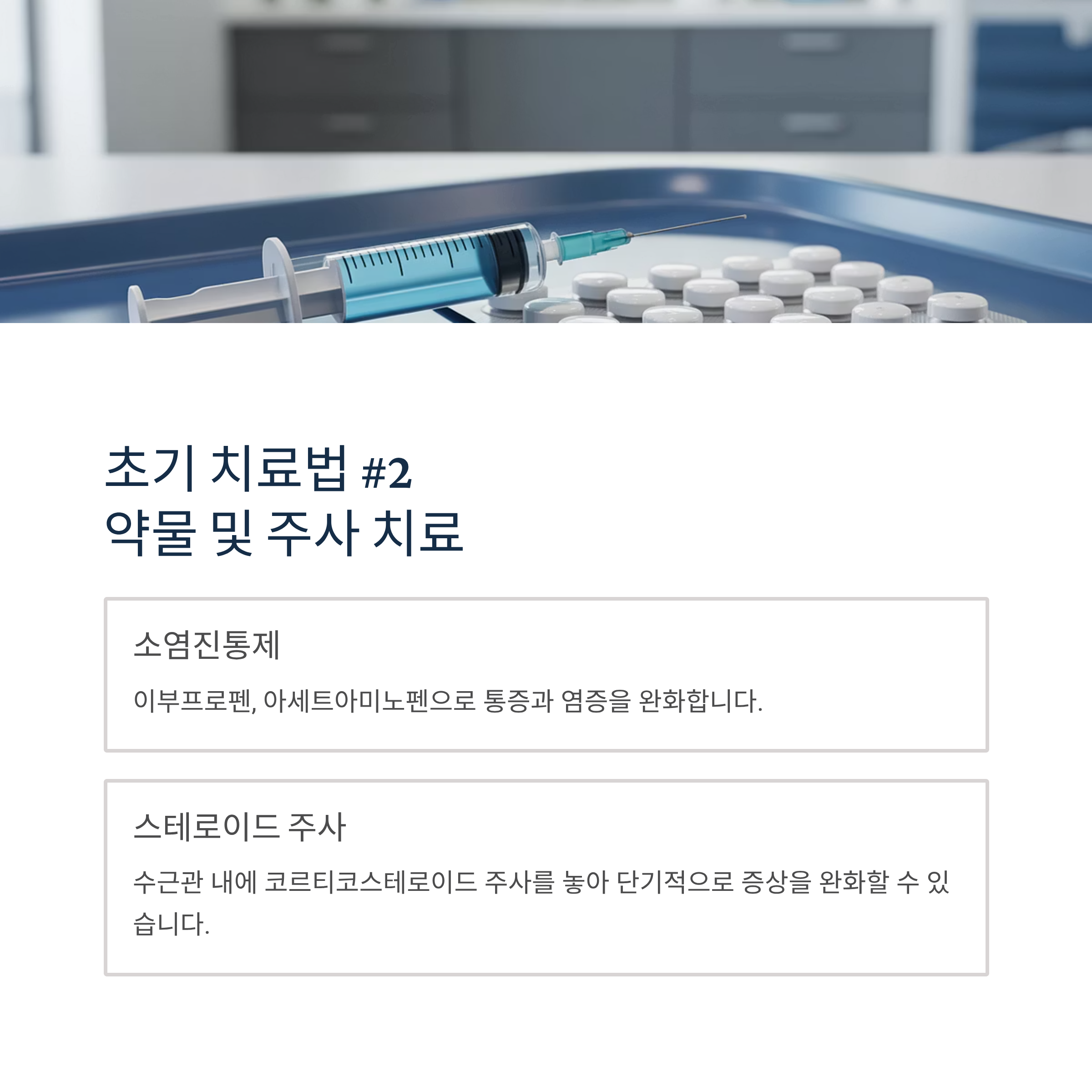소염진통제(이부프로펜, 아세트아미노펜)로 통증과 염증을 완화합니다.