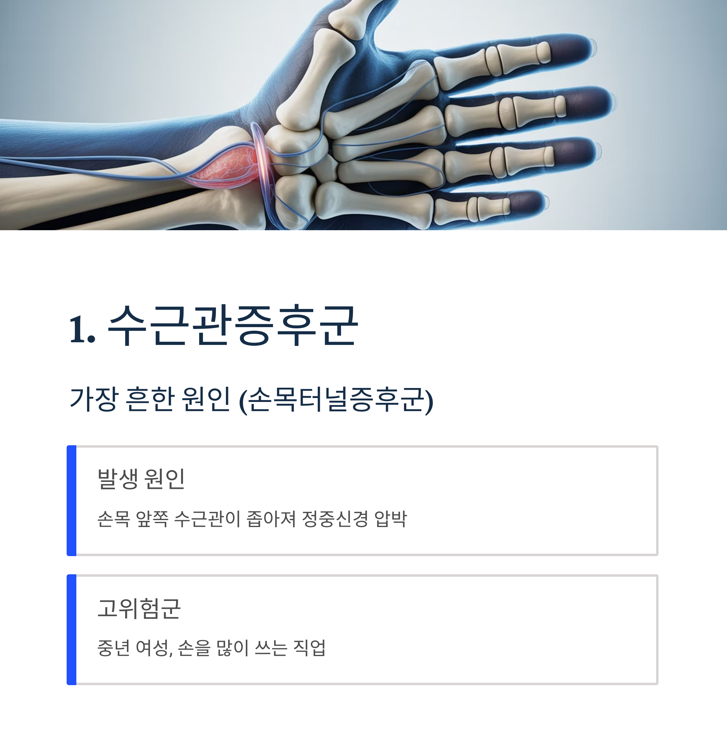 1. 수근관증후군(손목터널증후군) - 가장 흔한 원인