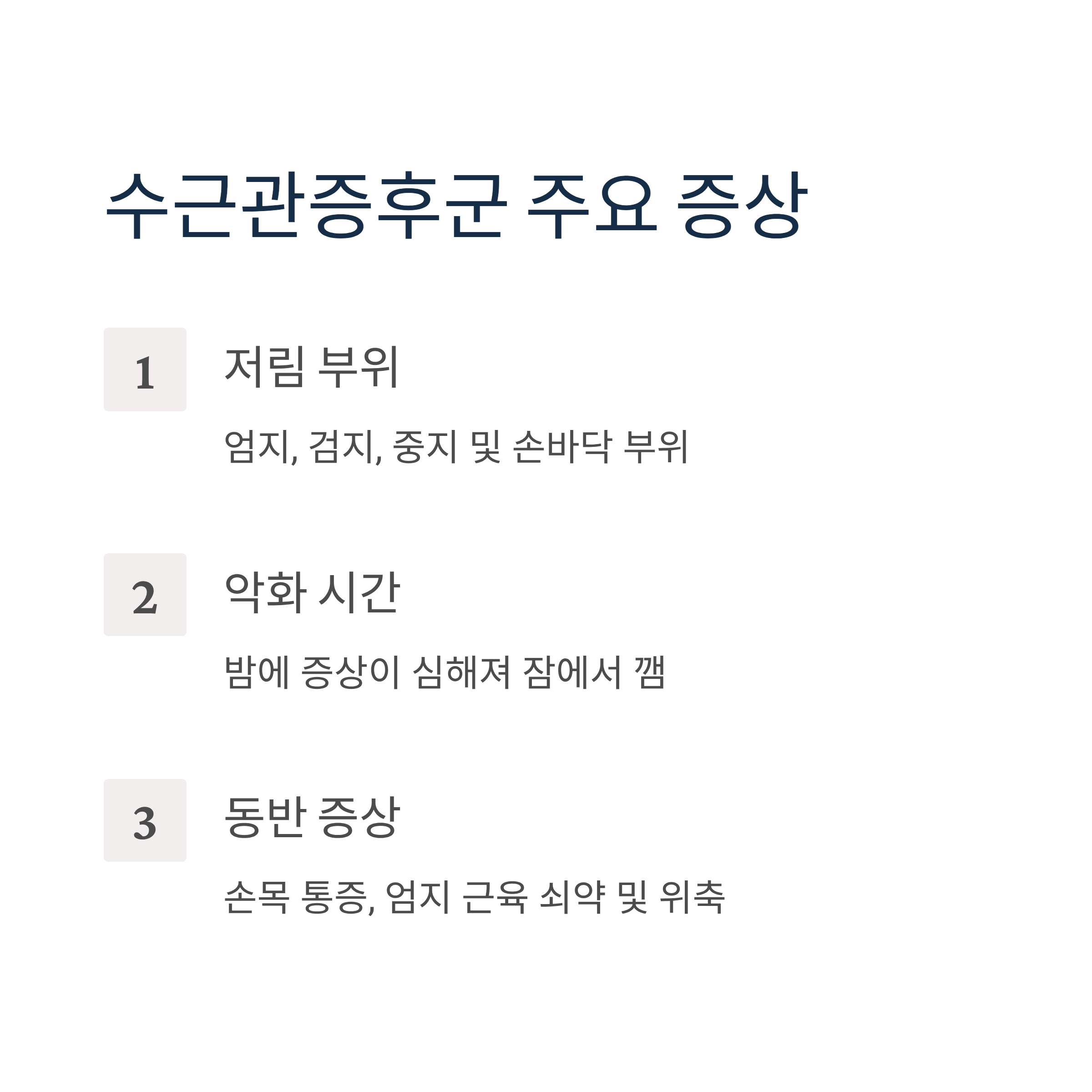 - 엄지, 검지, 중지 및 손바닥 부위의 저림