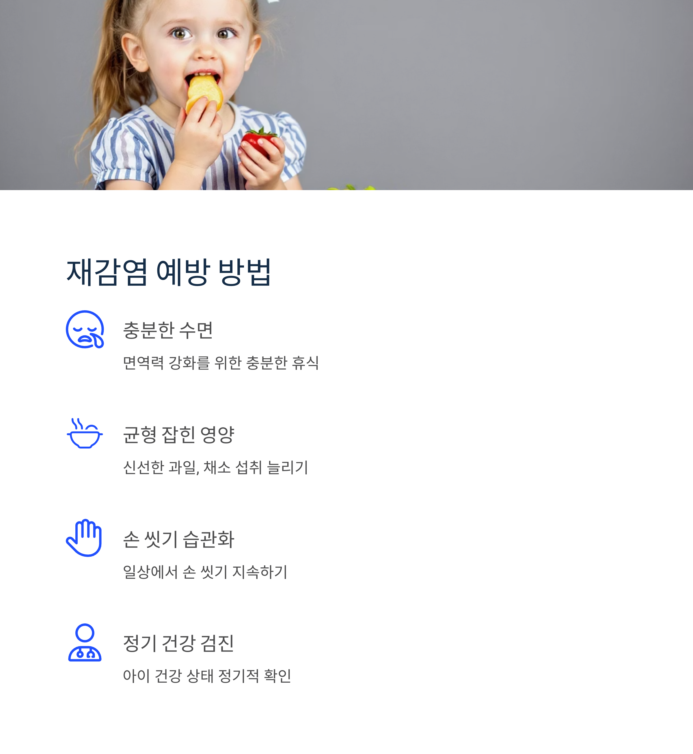 - 면역력 강화 (충분한 수면, 균형 잡힌 영양)