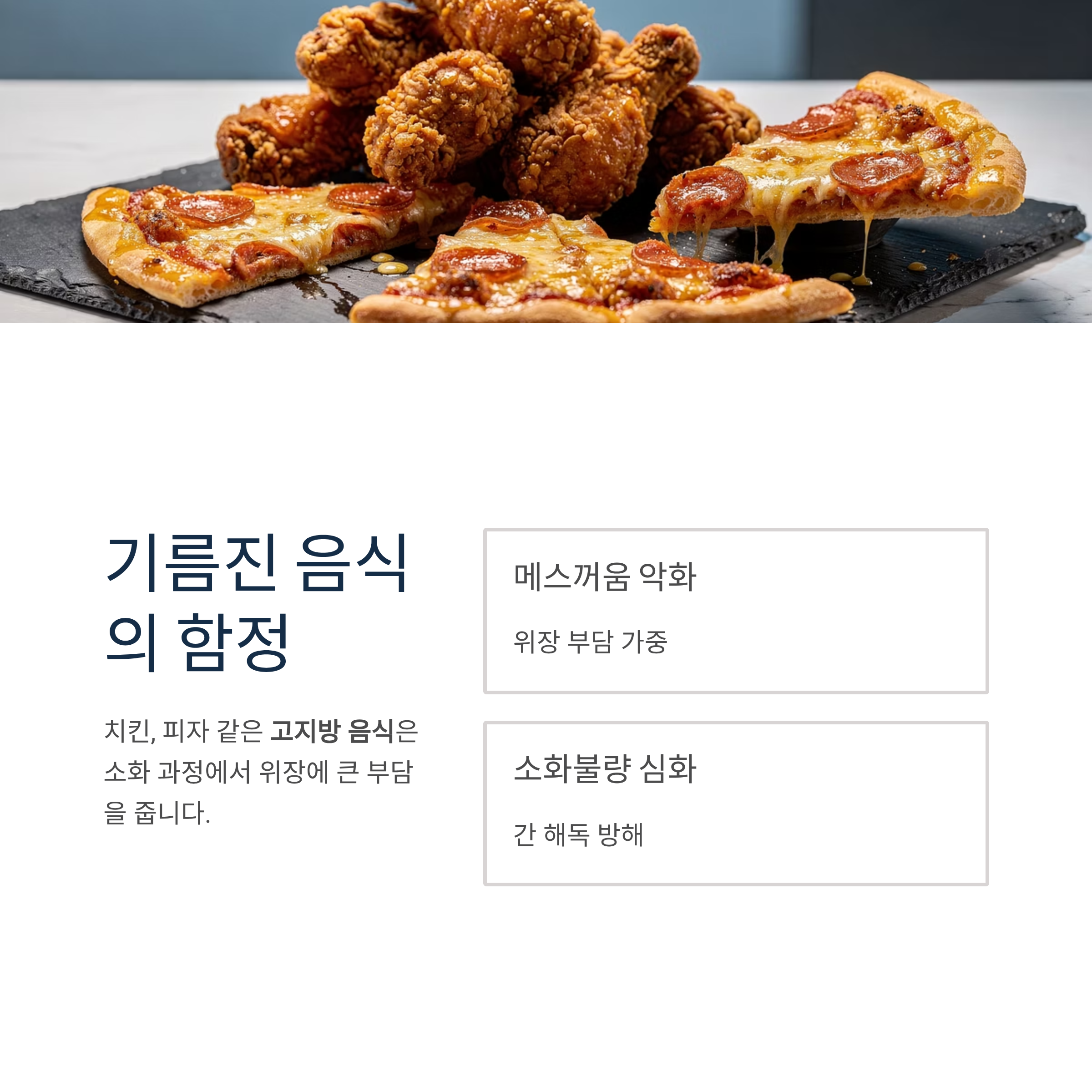 ❌ 3. 기름진 음식 - 위장 부담 가중