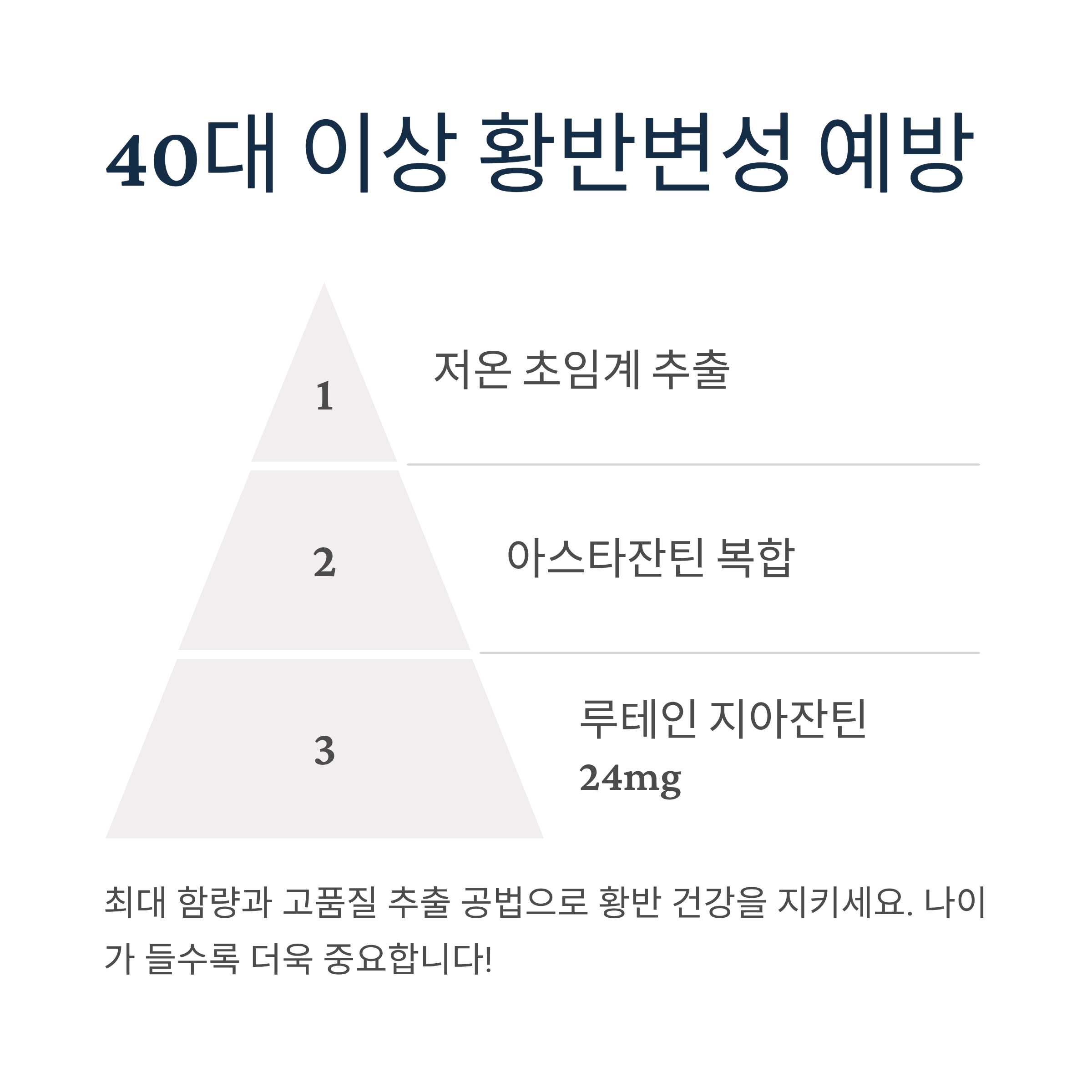 루테인 지아잔틴 최대 함량 24mg과 저온 초임계 추출 공법의 아스타잔틴 복합 제품이 적합합니다.