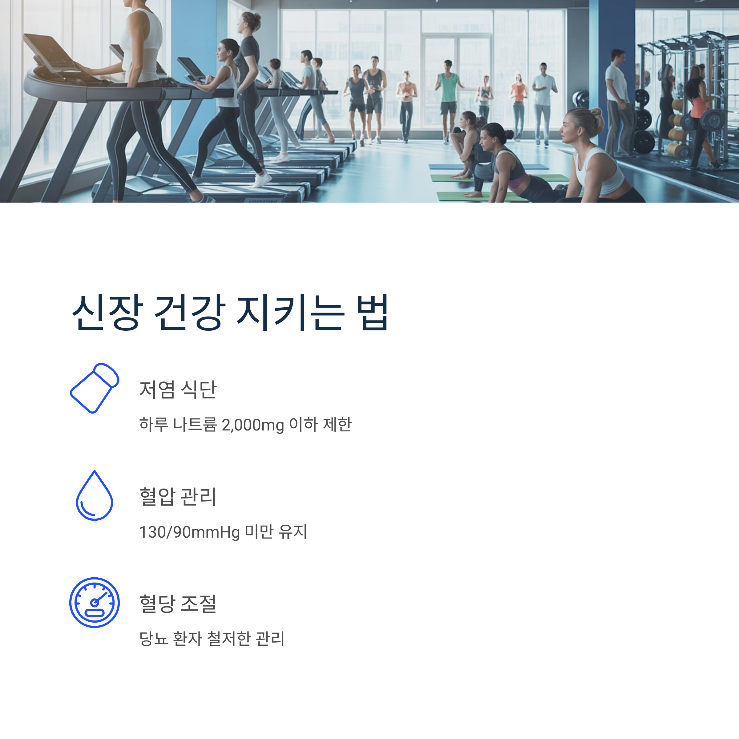 - 금연: 흡연은 신장 혈관을 손상시키므로 반드시 금연하세요
