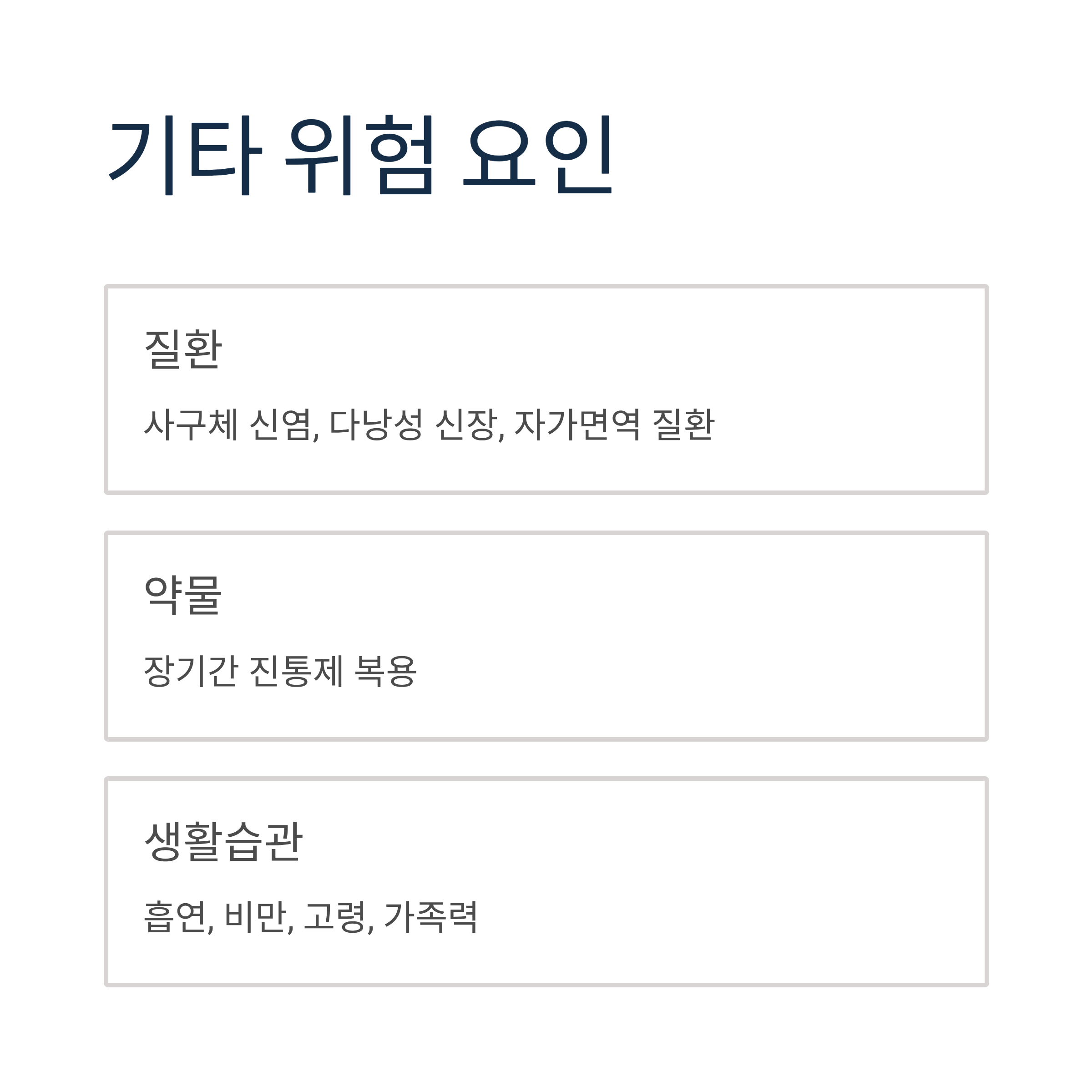 - 약물 주의: 소염진통제나 성분 불명확한 약제는 피하세요