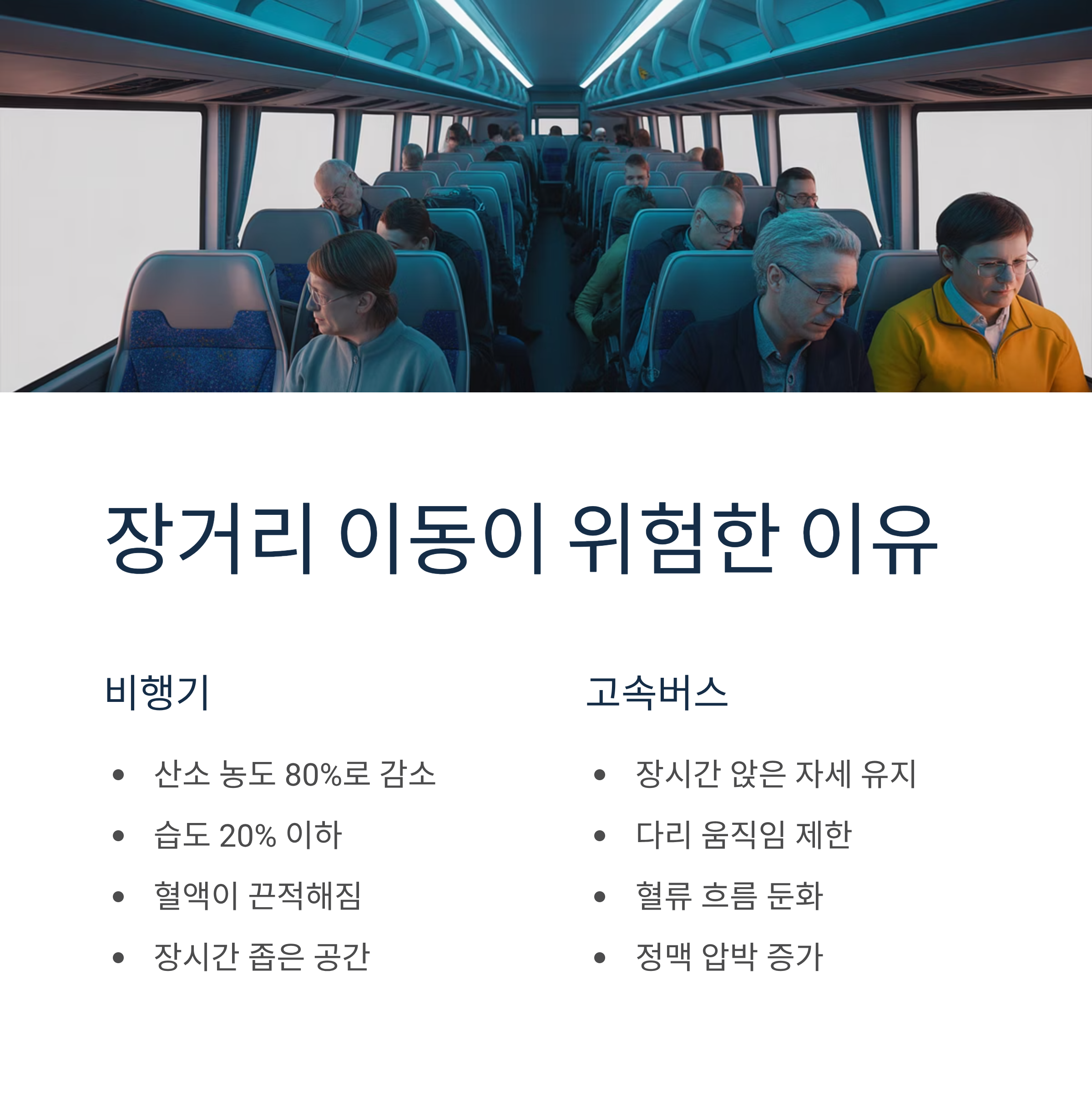 특히 장거리 고속버스도 마찬가지입니다. 비행기는 지상보다 산소가 80% 밖에 존재하지 않고 습도 또한 많아야 20% 정도기 때문에 혈액이 끈적해지고 장시간 앉아있으면 피의 흐름도 둔해집니다.