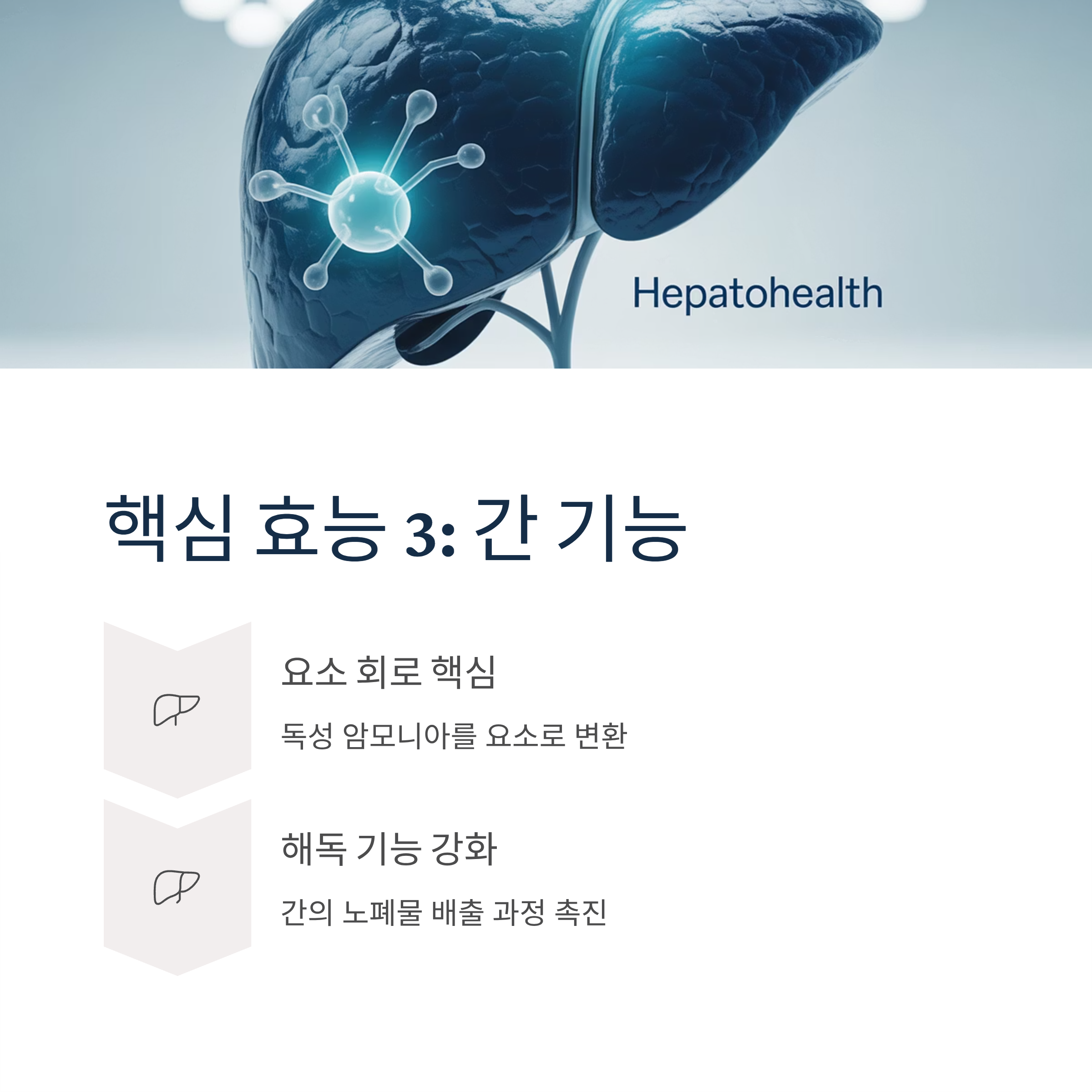 독성 암모니아를 요소로 변환하여 배출하는 과정을 촉진해 간 건강을 개선합니다.