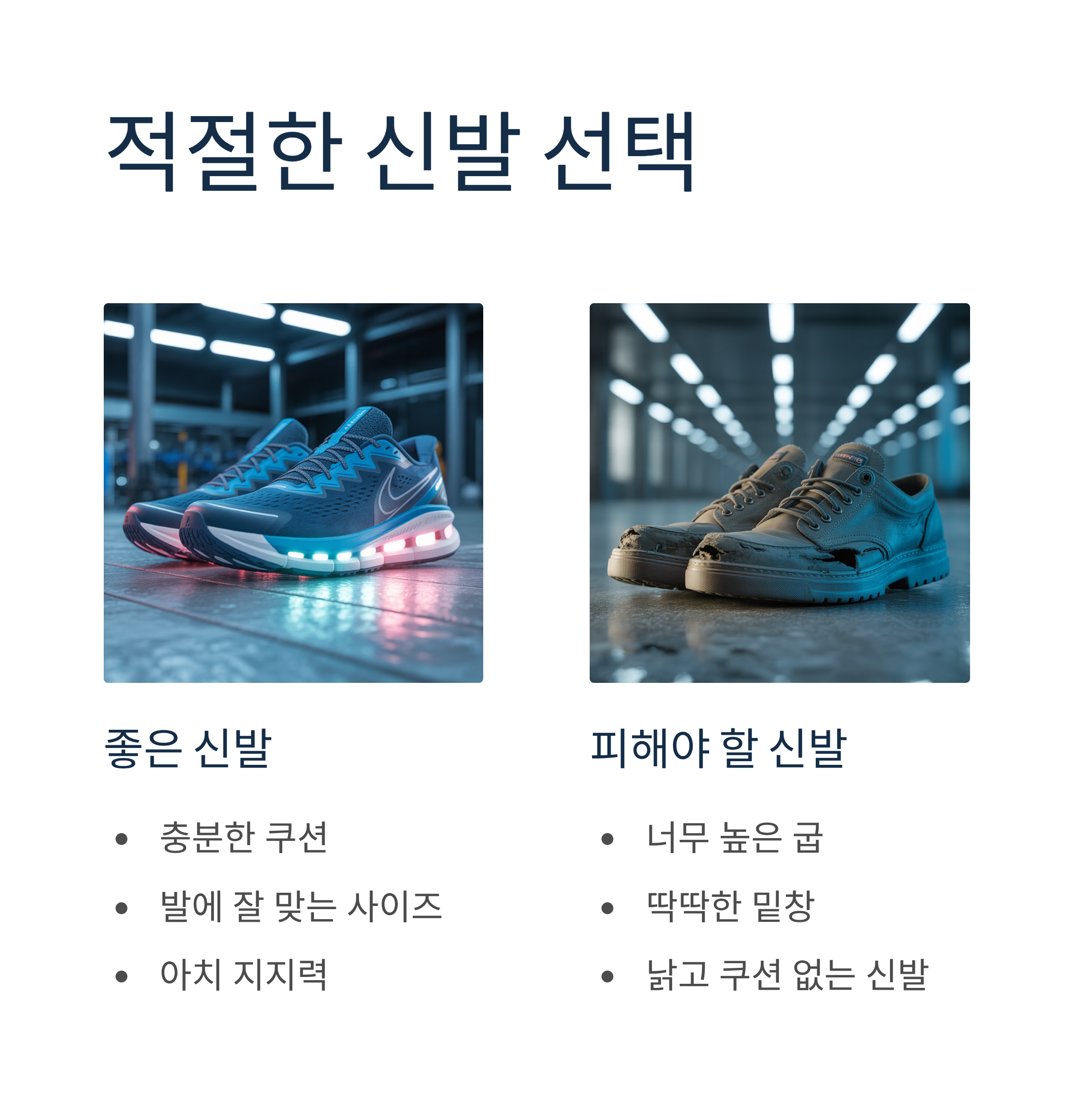 - 쿠션이 좋고 발에 맞는 신발 선택