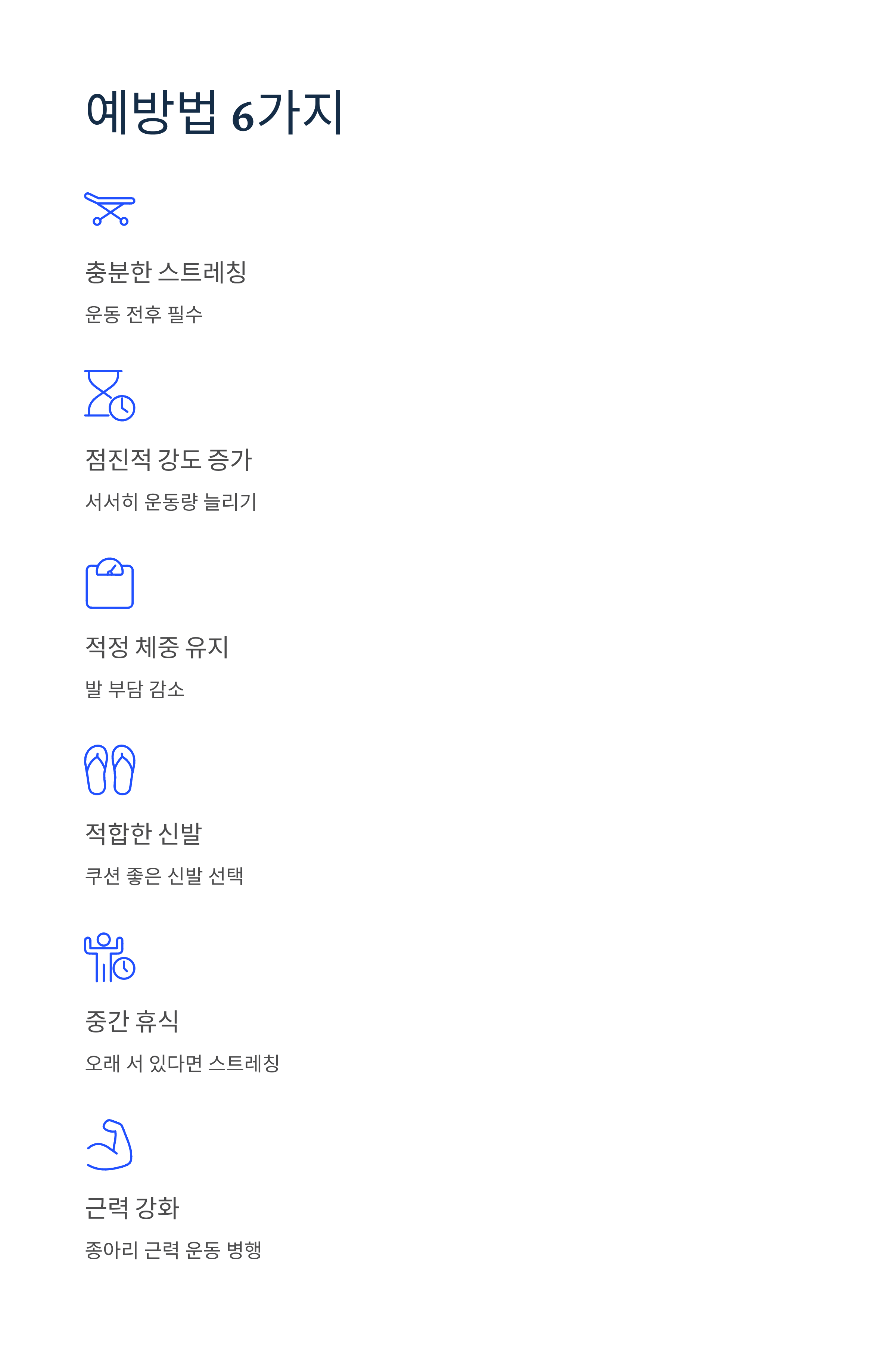 - 운동 전후 충분한 스트레칭 필수