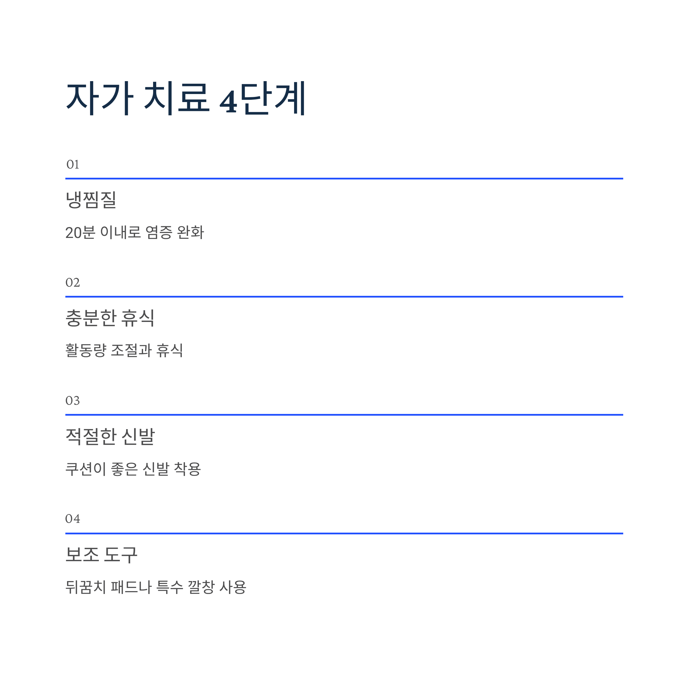- 20분 이내 냉찜질로 염증 완화