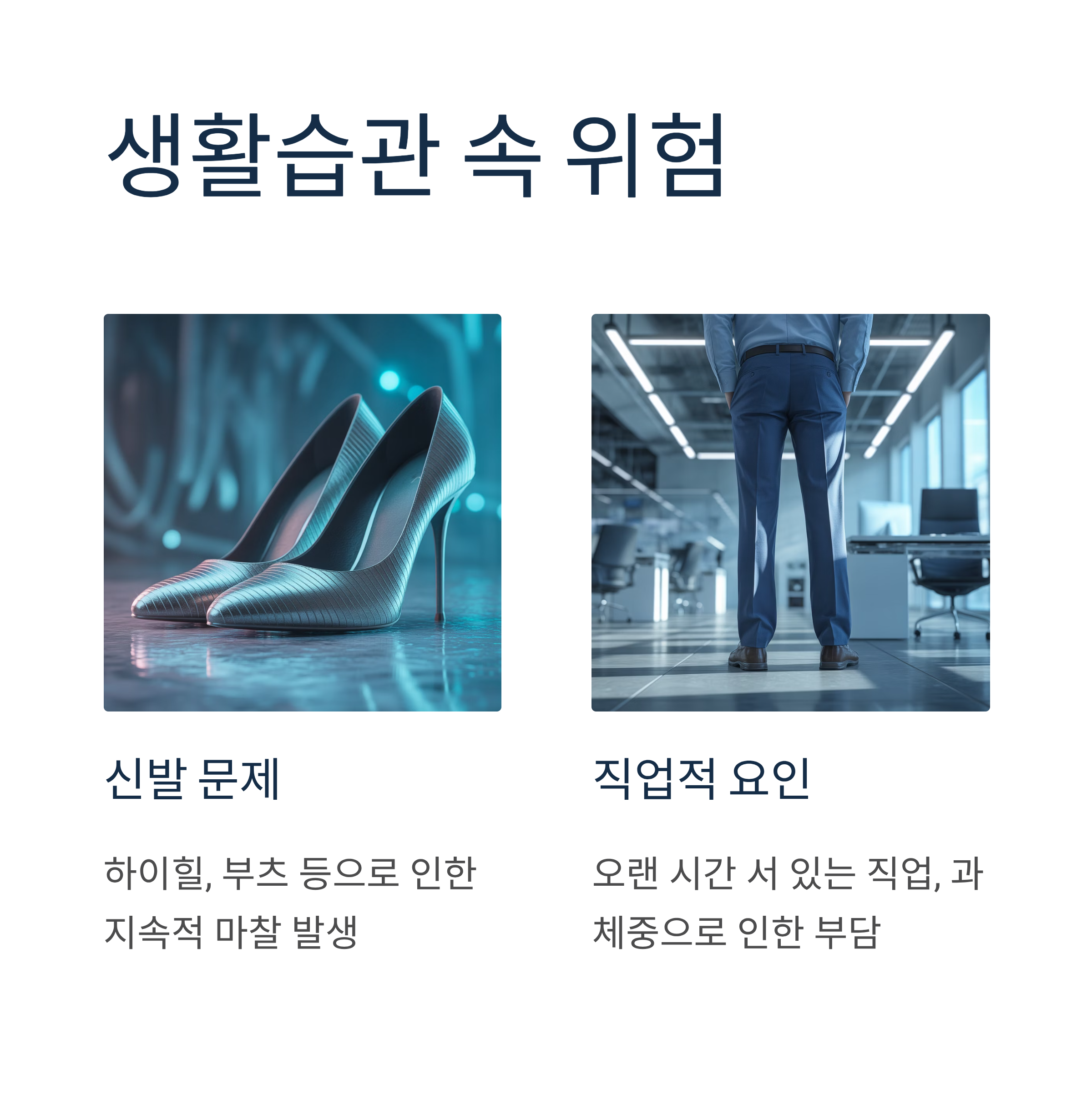 - 하이힐, 부츠 등을 신어 지속적으로 신발 뒤축에 의한 마찰이 발생하는 경우