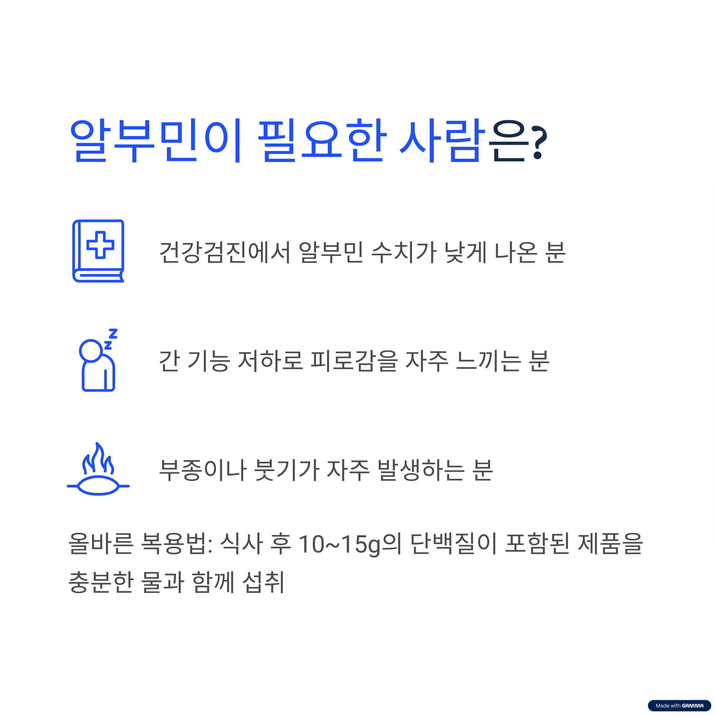 특히 의료용 알부민과 달리 영양제 형태의 알부민은 상대적으로 안전하지만, 개인의 건강 상태에 따라 전문가와 상담 후 섭취하는 것을 권장합니다. 건강한 혈관과 활력 넘치는 일상을 위해 알부민의 힘을 올바르게 활용해보세요.