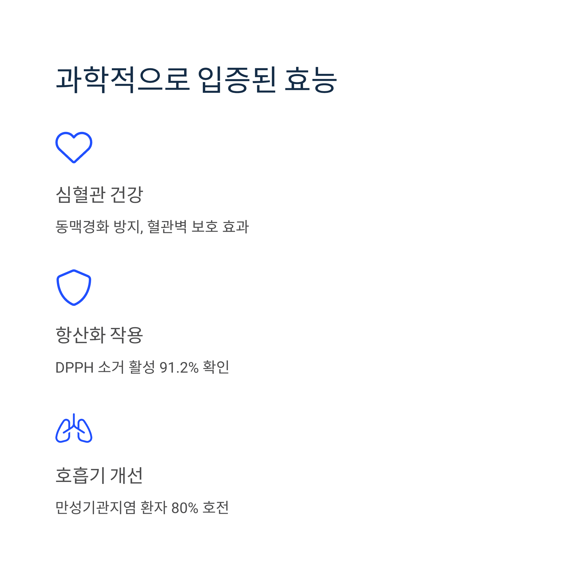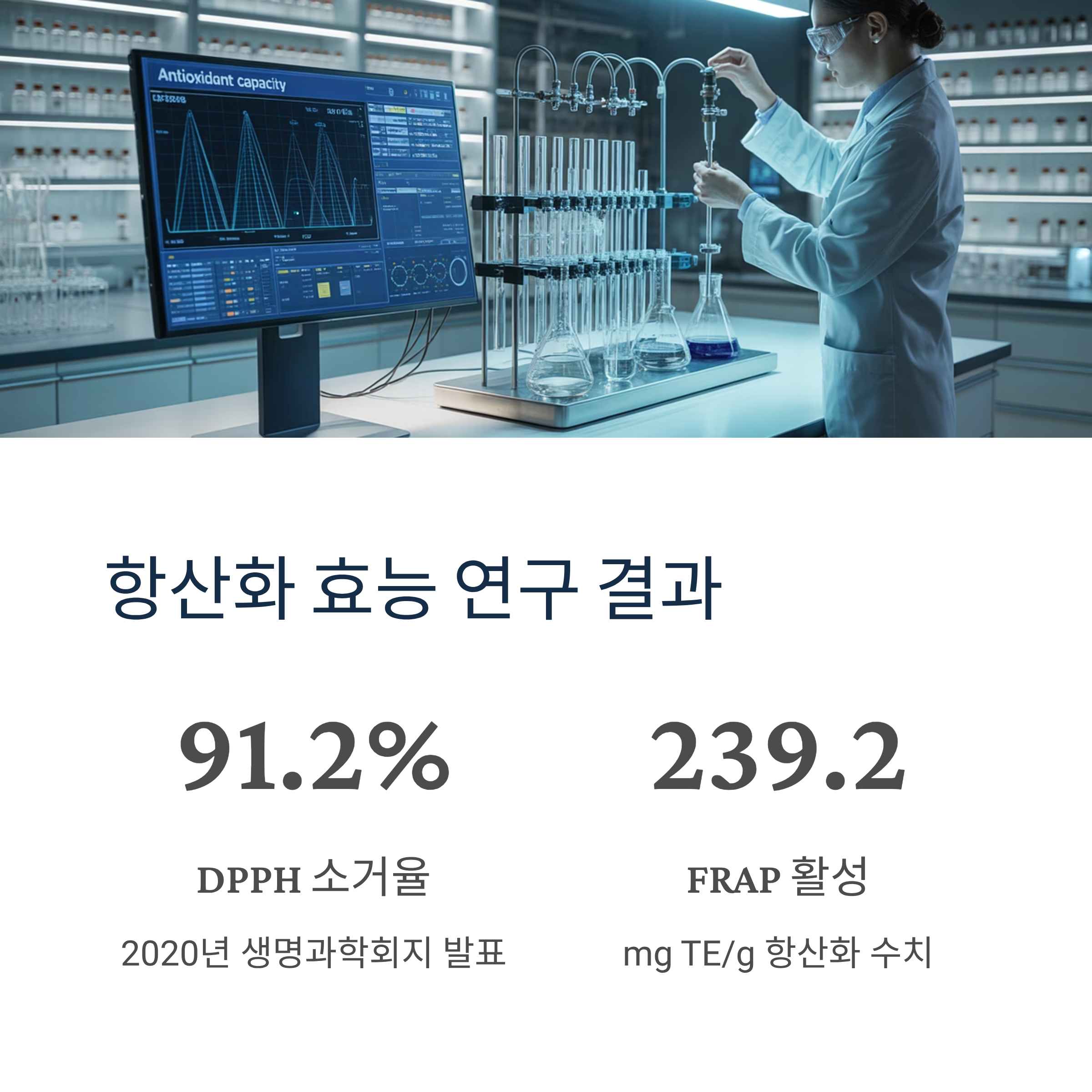 2020년 생명과학회지에 발표된 연구에 따르면, 야관문의 DPPH radical 소거 활성이 91.2%로 매우 높게 나타났으며, FRAP assay 결과 239.2 mg TE/g의 항산화 활성을 보였습니다.