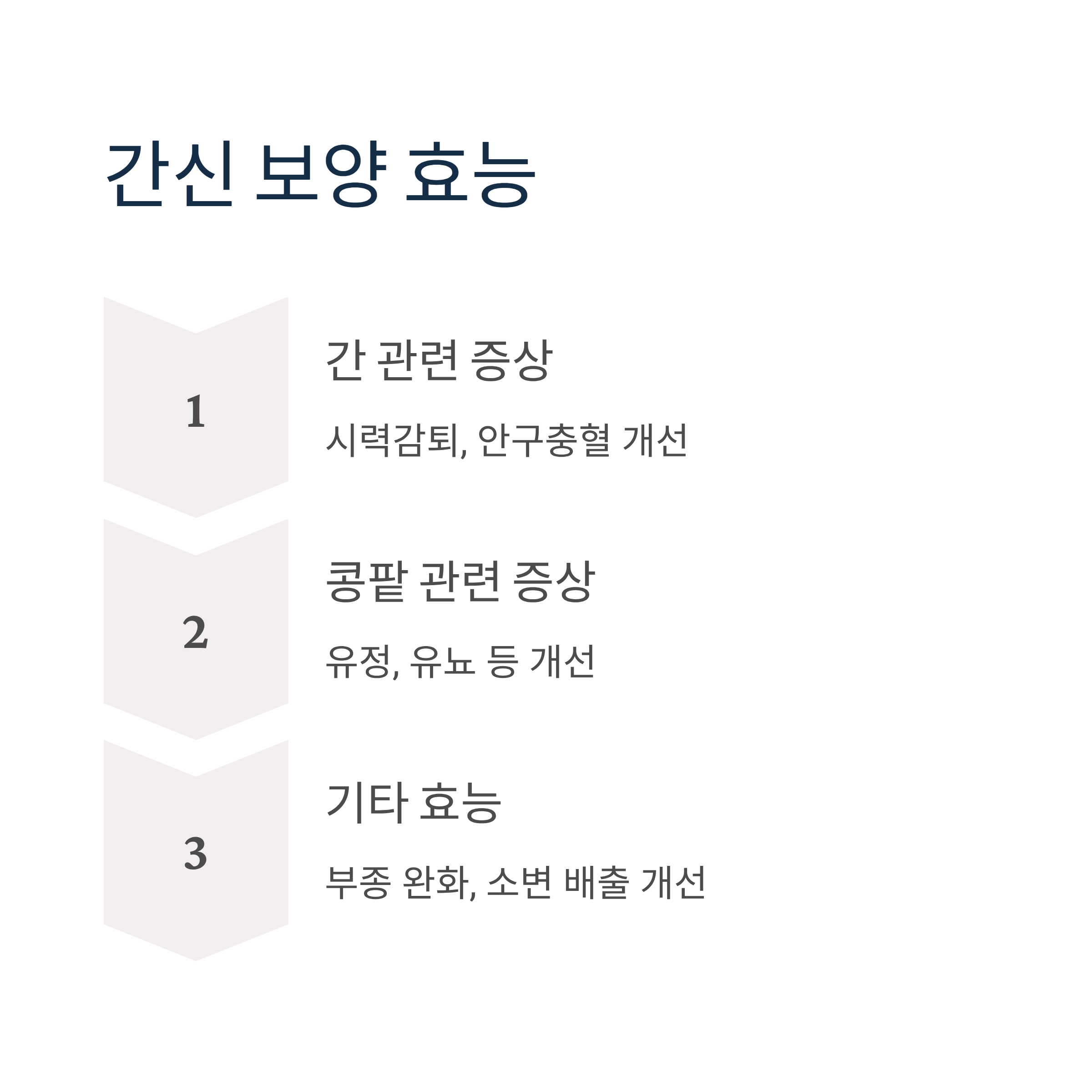 전통 한의학에서 야관문은 간신(肝腎)을 보하는 효능이 있어 다음과 같은 증상 개선에 도움이 됩니다: