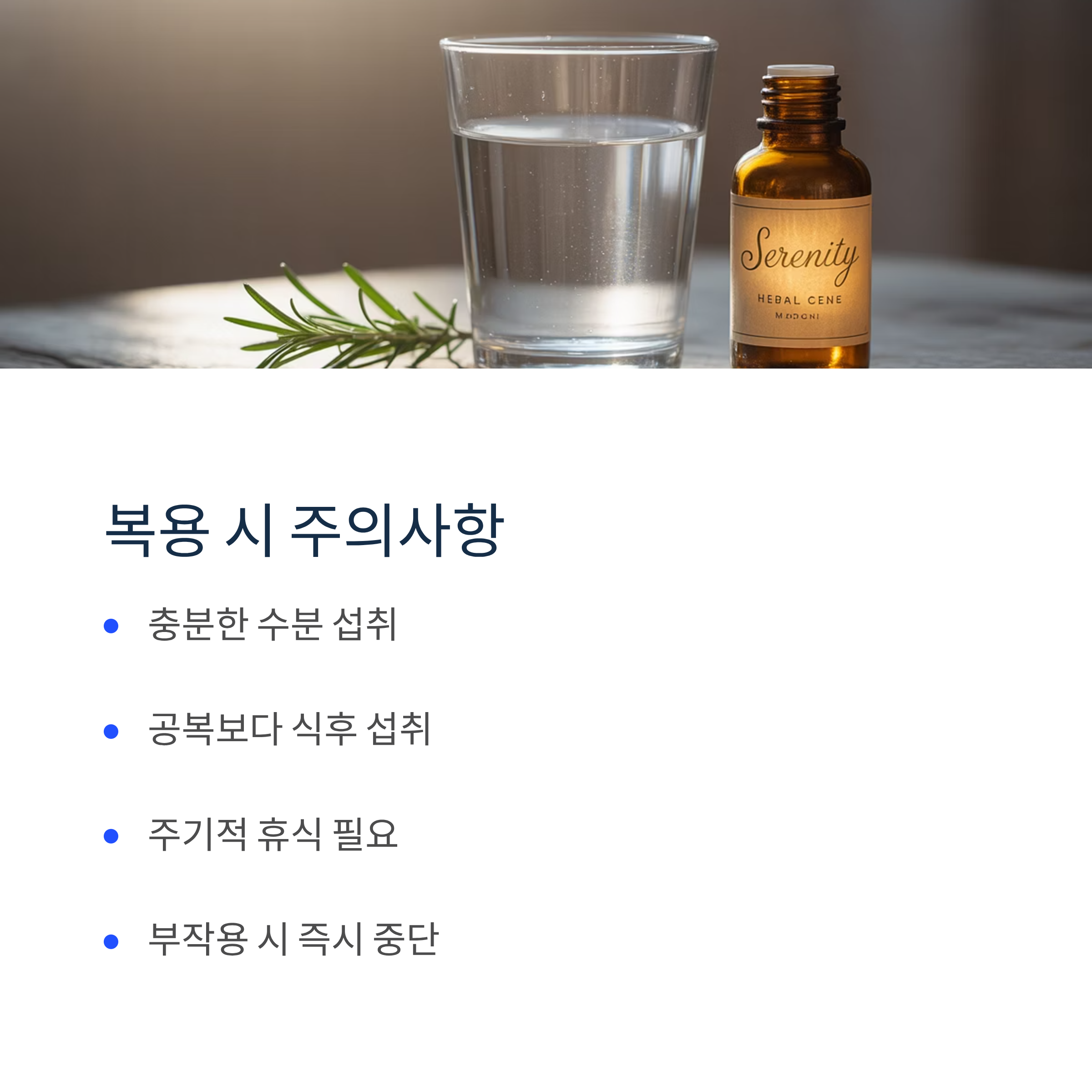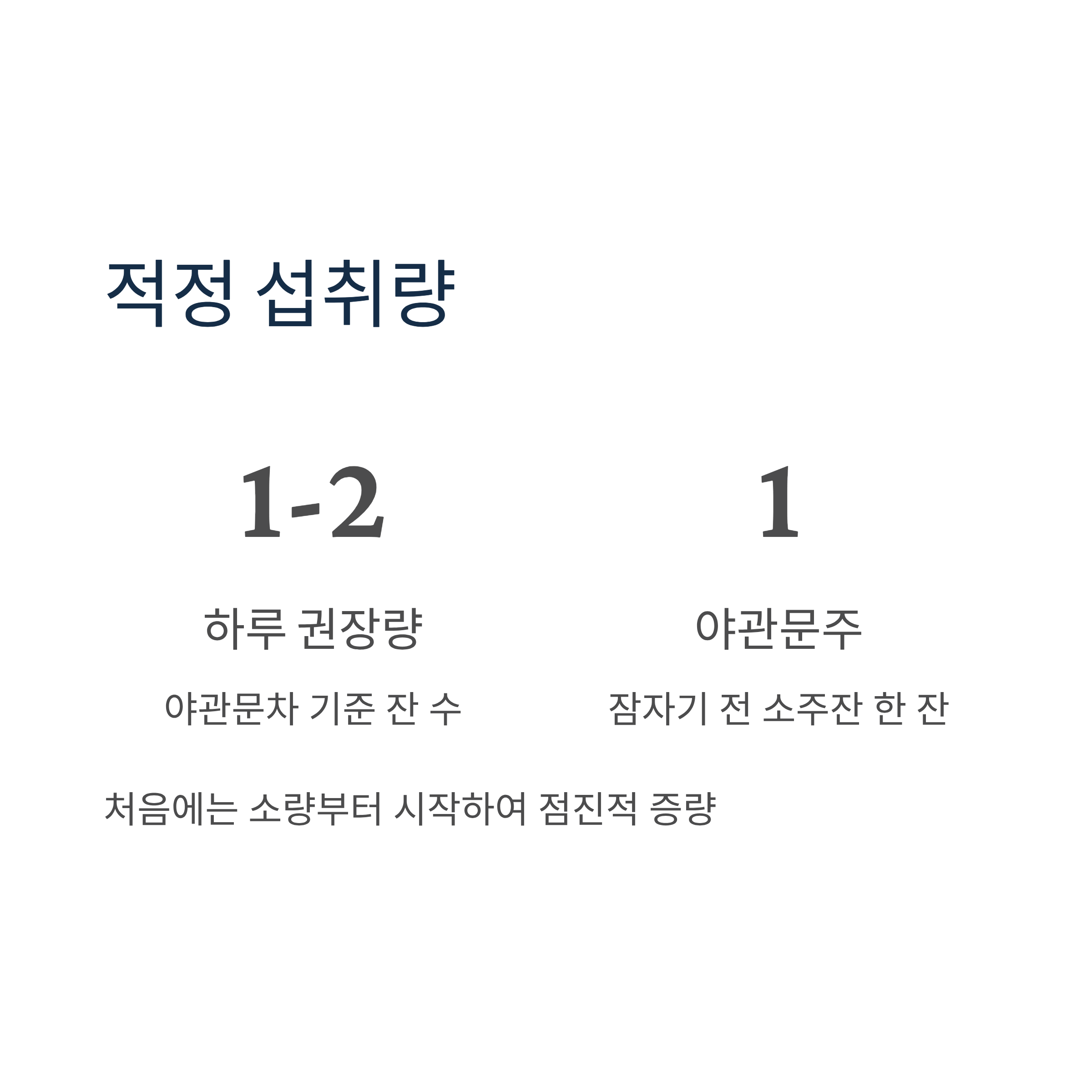 - 처음에는 소량부터 시작하여 몸의 반응을 살펴본 후 점진적으로 증량