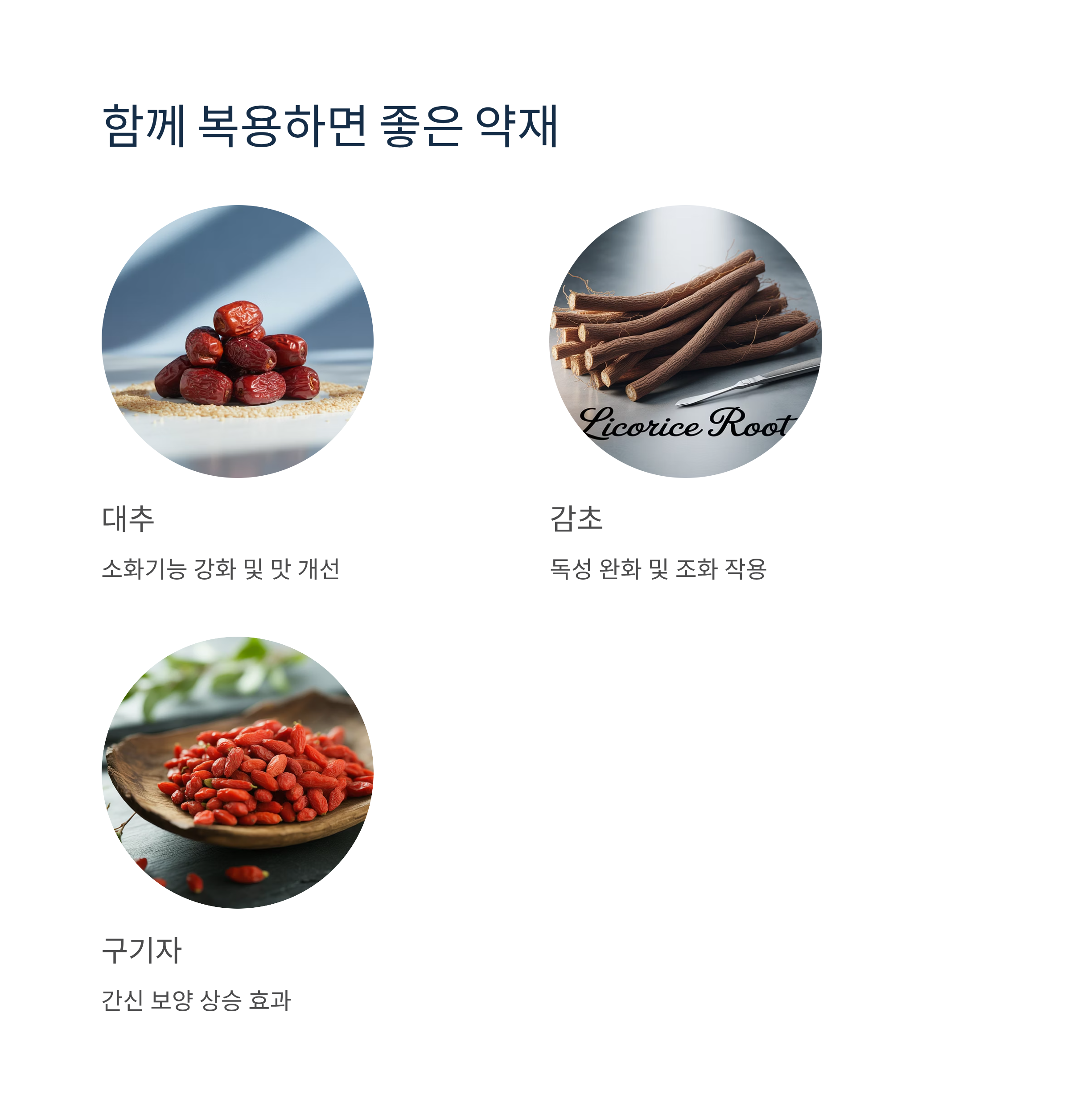 - 탕재: 대추를 넣어 끓이거나 꿀을 첨가하여 복용