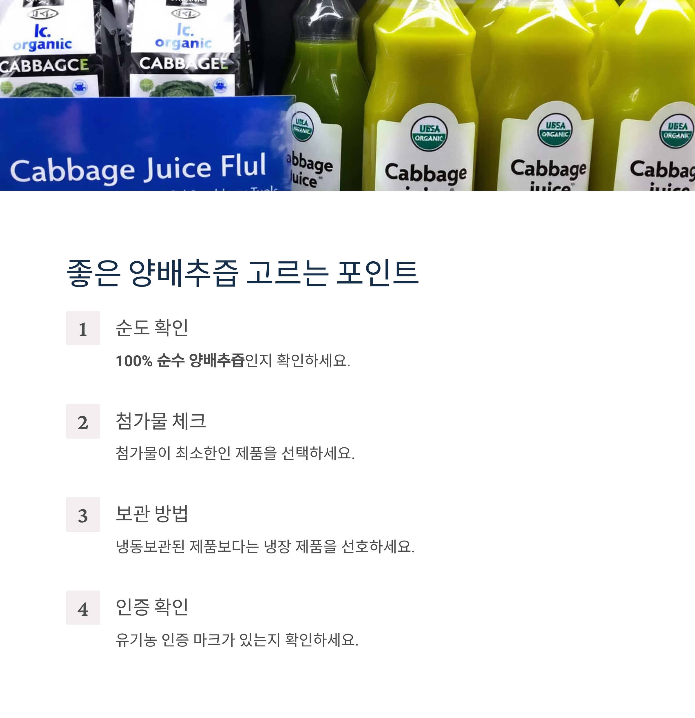 - 100% 순수 양배추즙인지 확인