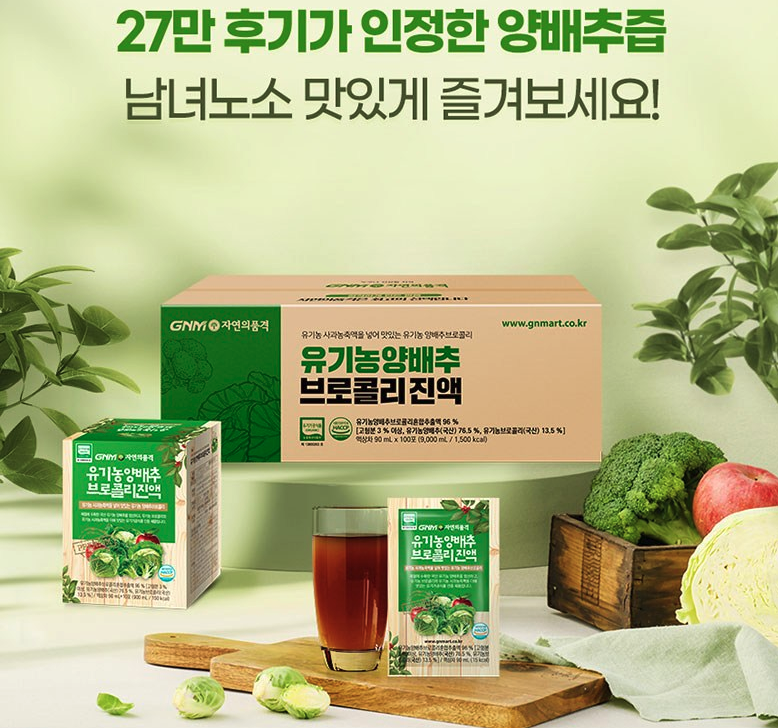 현재 별점 4.7점, 리뷰 48351개를 가진 GNM자연의품격 유기농 양배추 브로콜리 진액, 90ml, 100개! 지금 쿠팡에서 더 저렴하고 다양한 양배추즙 제품들을 확인해보세요.