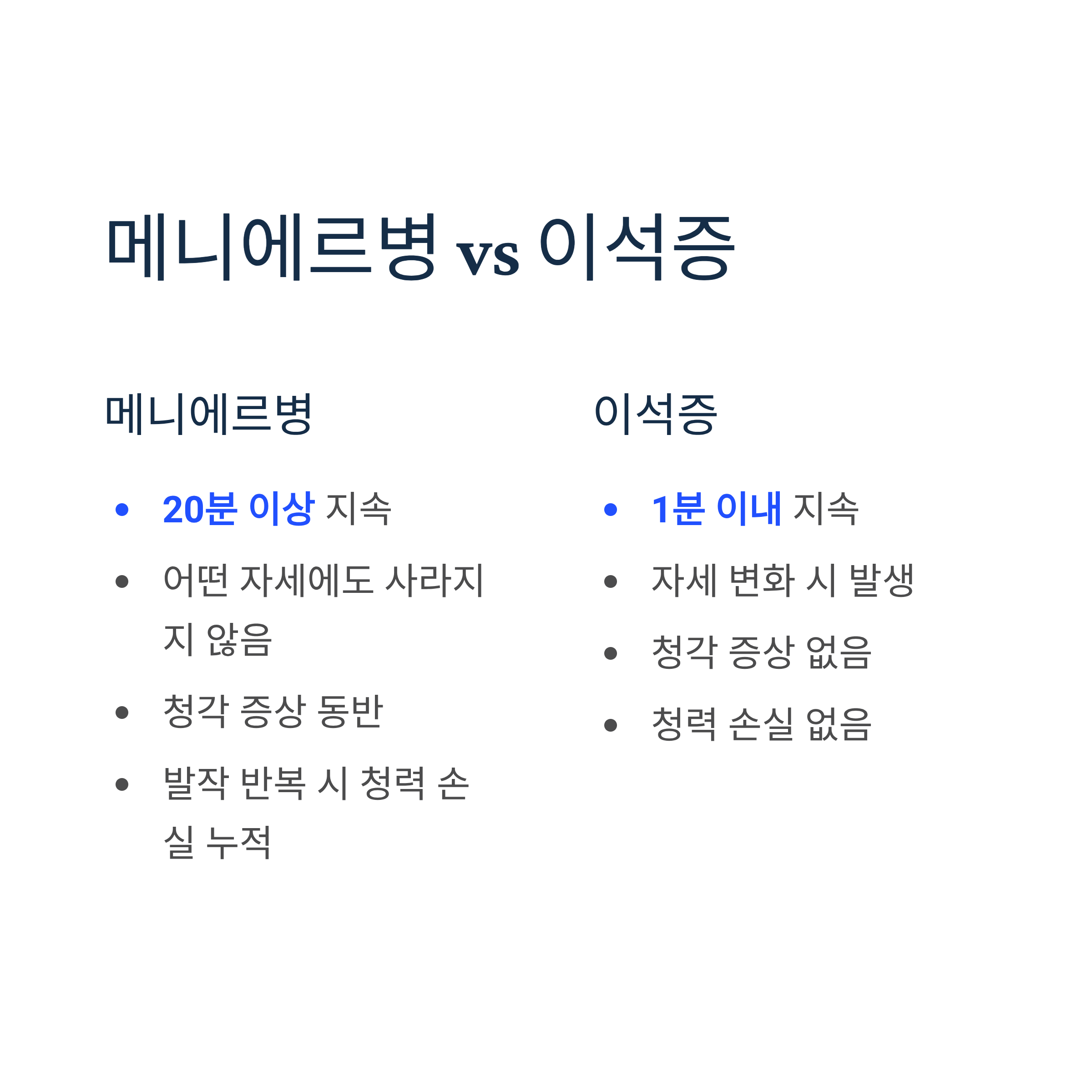 전정신경염 증상 구별법 - 긴 지속시간과 청각 정상