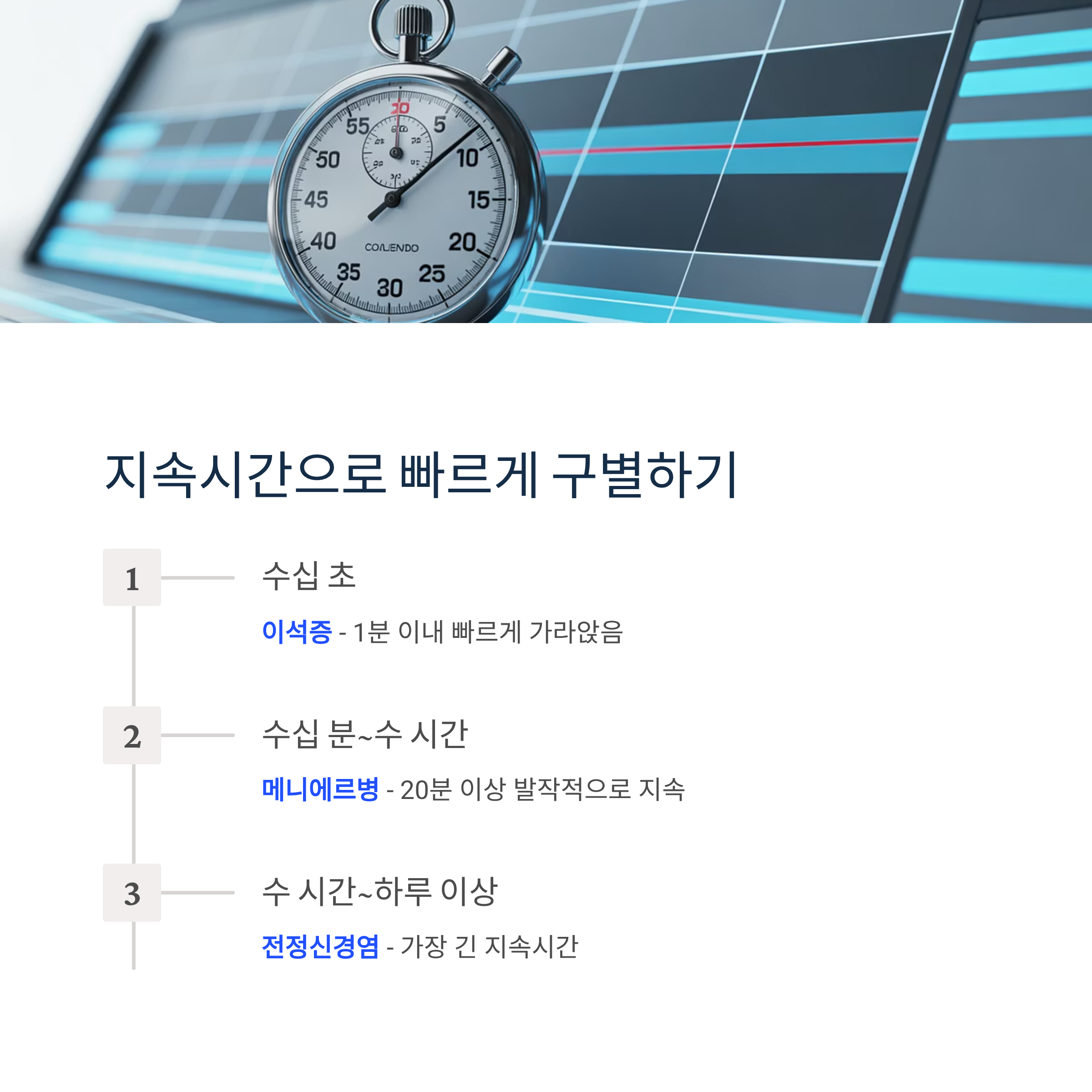 어지럼증 원인별 구별의 핵심, 지속시간부터 확인하세요