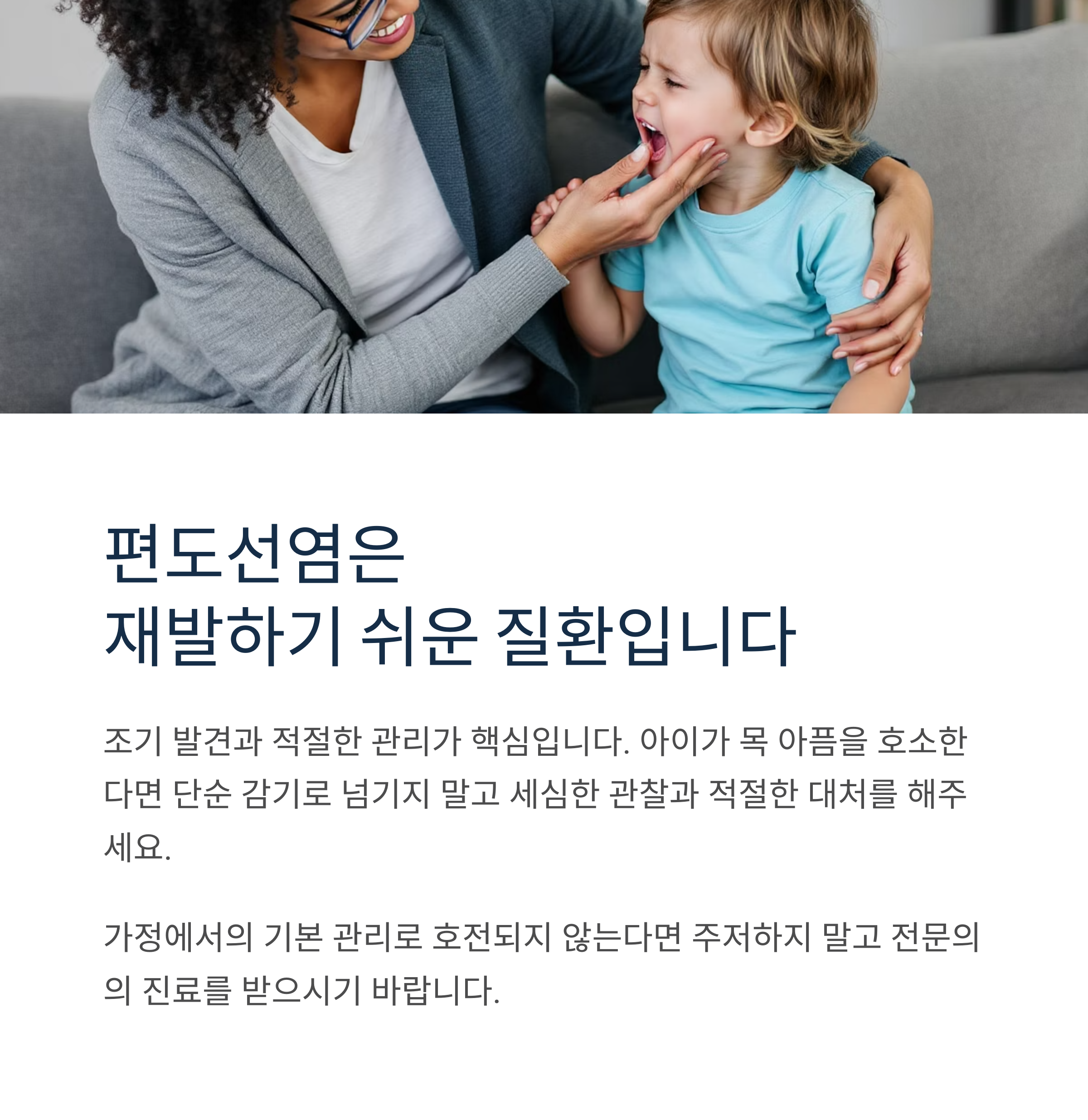 편도선염은 재발하기 쉬운 질환이므로 평상시 꾸준한 관리가 중요합니다:
