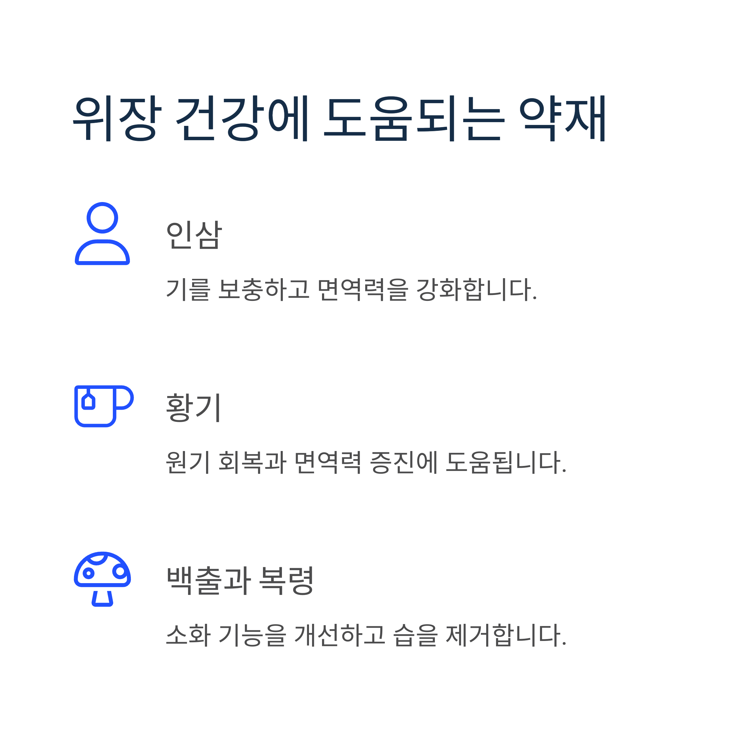 - 인삼, 황기, 백출, 복령 등 기를 보하는 약재 활용