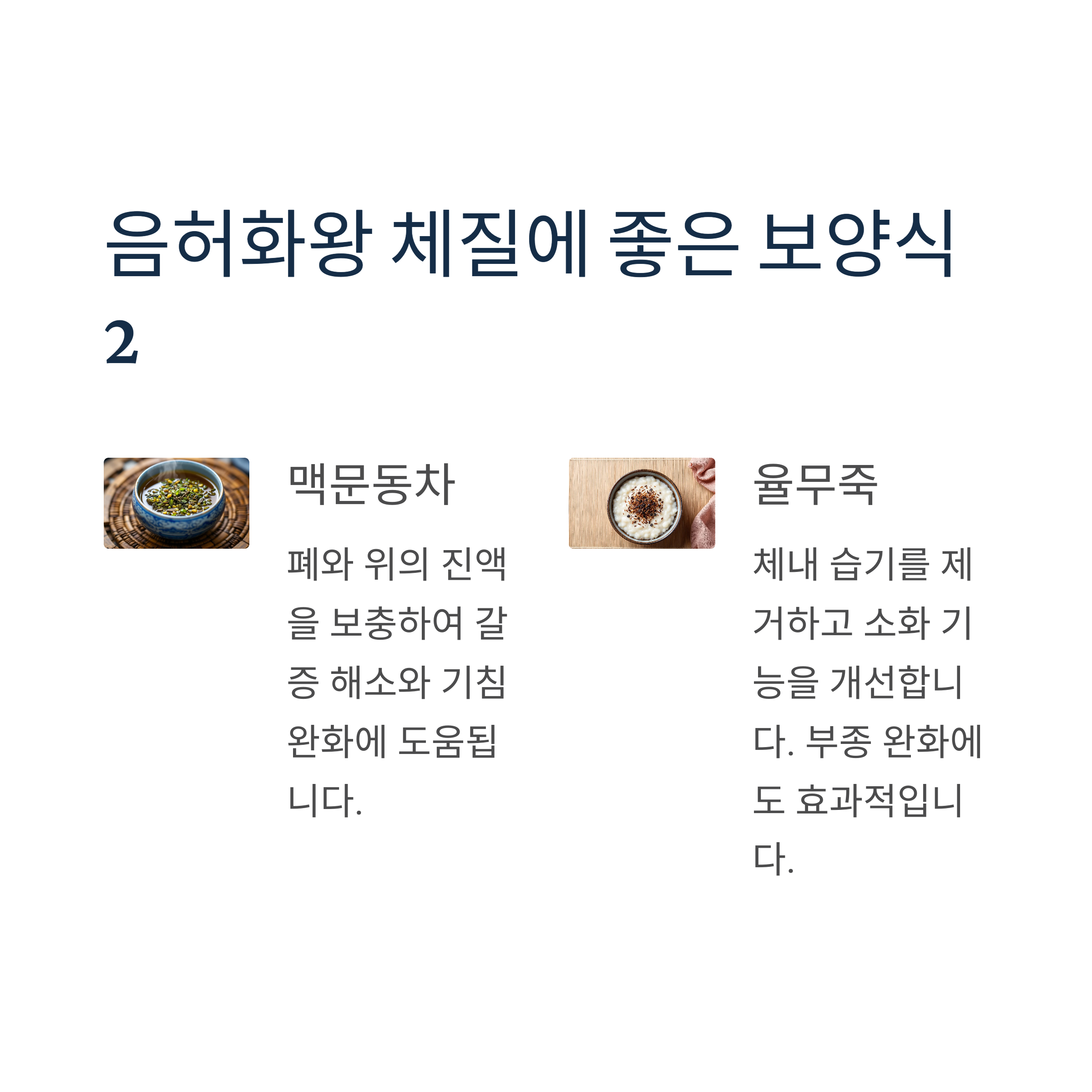 음허화왕(陰虛火旺) 체질은 음기가 부족해 열이 위로 치솟는 체질을 말합니다. 이런 분들에게는 전통적인 고열량 보양식이 오히려 독이 될 수 있습니다.