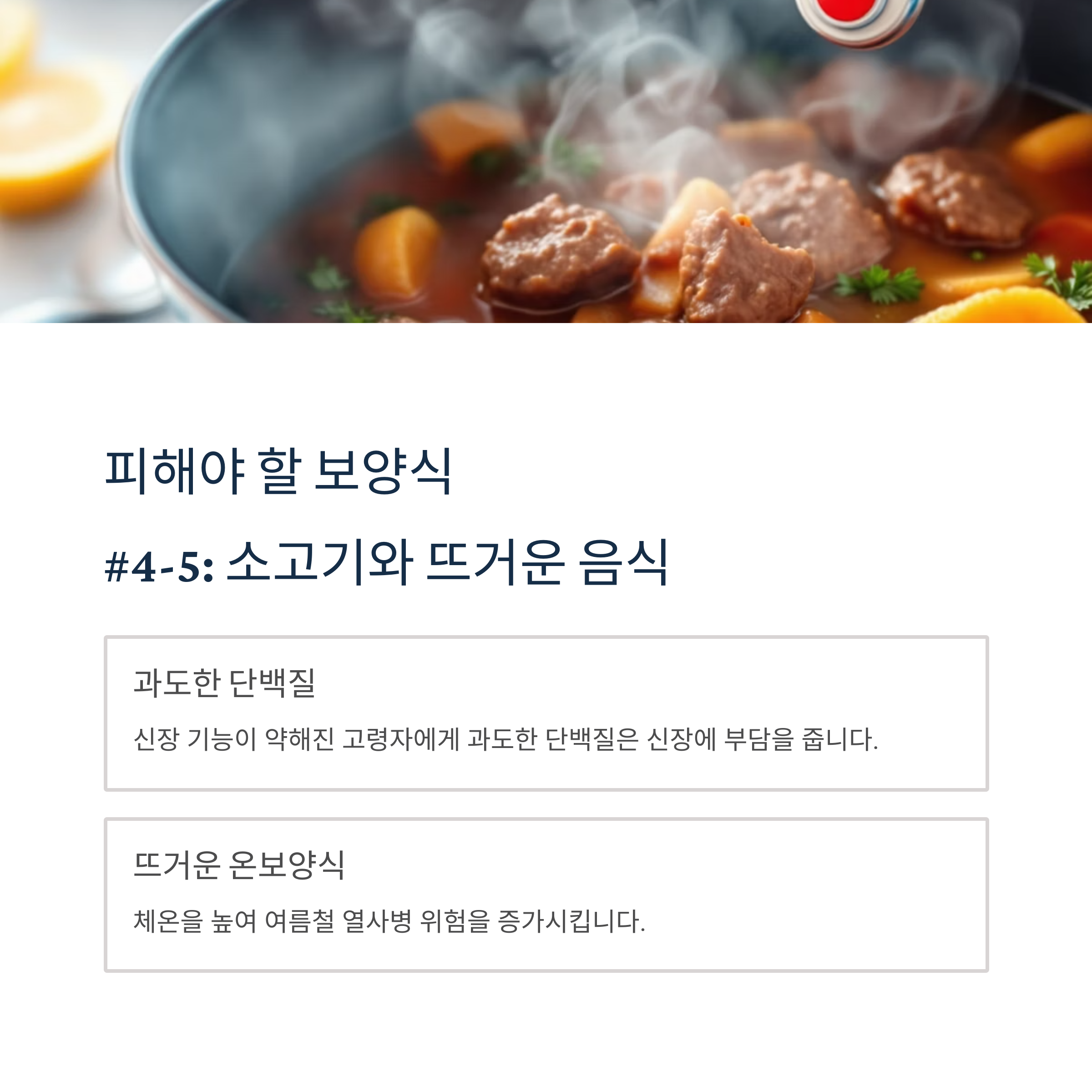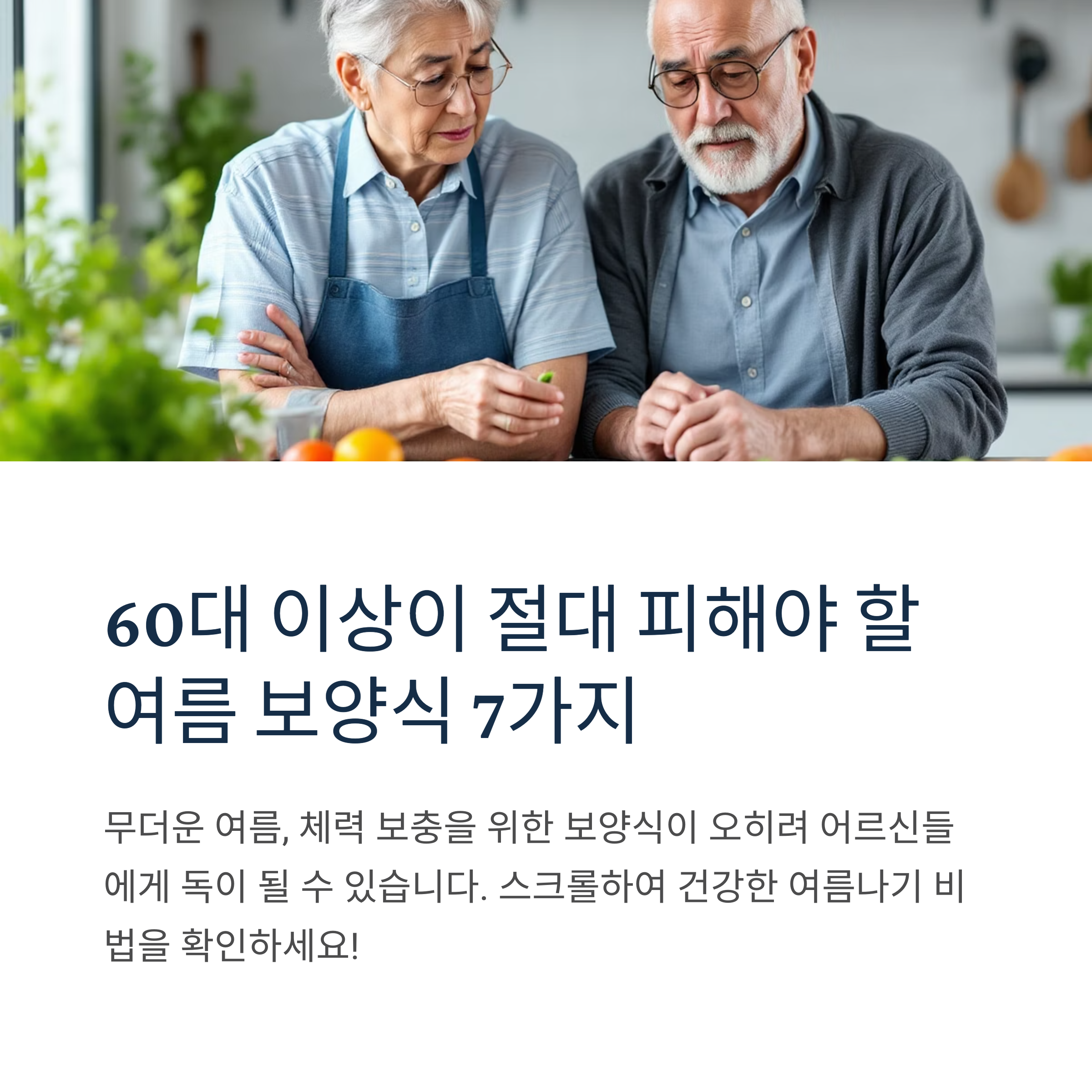 여름철 건강한 보양식 선택은 60세 이상 피해야 할 음식을 정확히 아는 것부터 시작됩니다. 무작정 "몸에 좋다"는 음식보다는 개인의 건강 상태에 맞는 맞춤형 식단이 더욱 중요합니다.