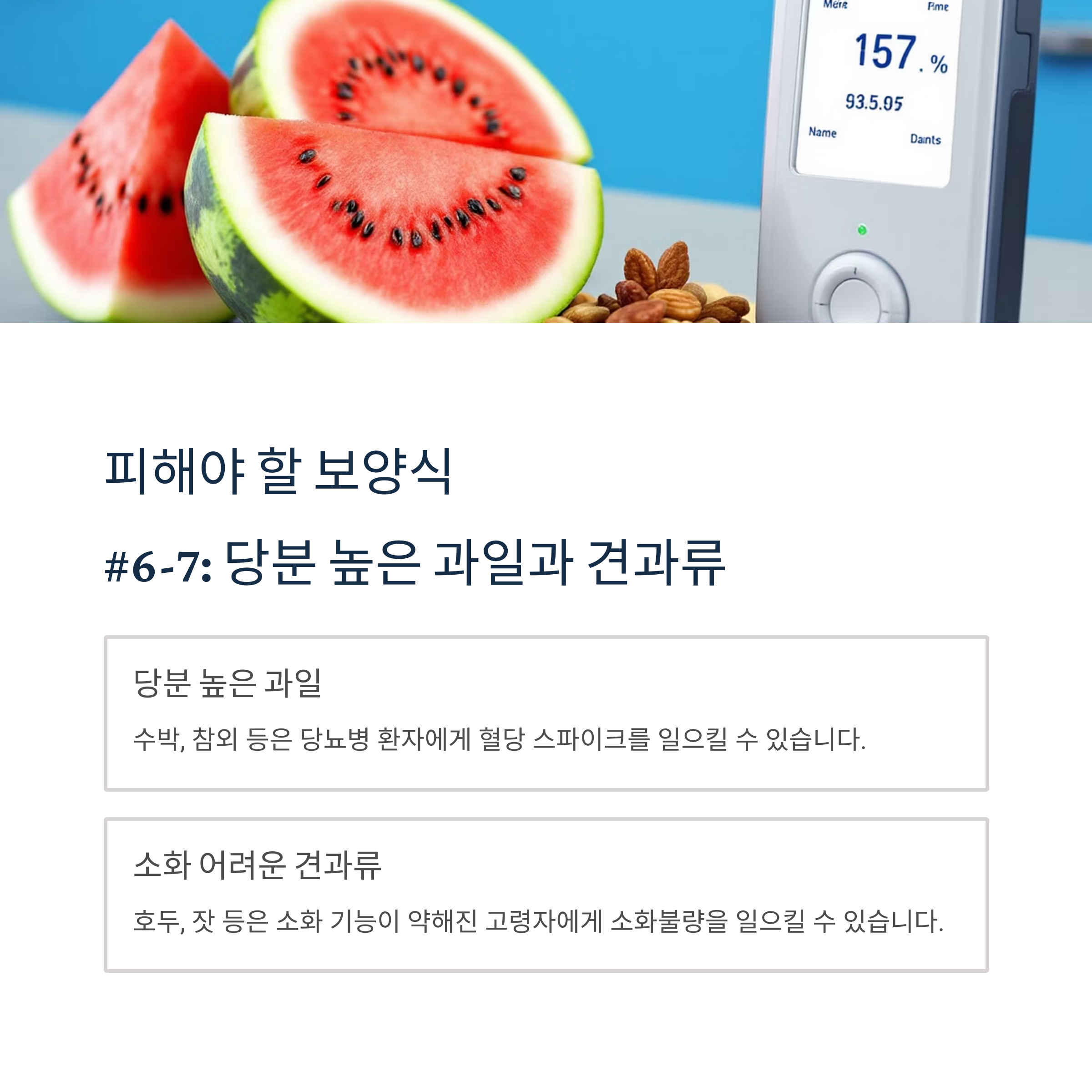 수박, 참외 등 당분이 높은 과일을 과도하게 섭취하면 당뇨병 환자에게는 혈당 스파이크를 일으킬 수 있습니다.