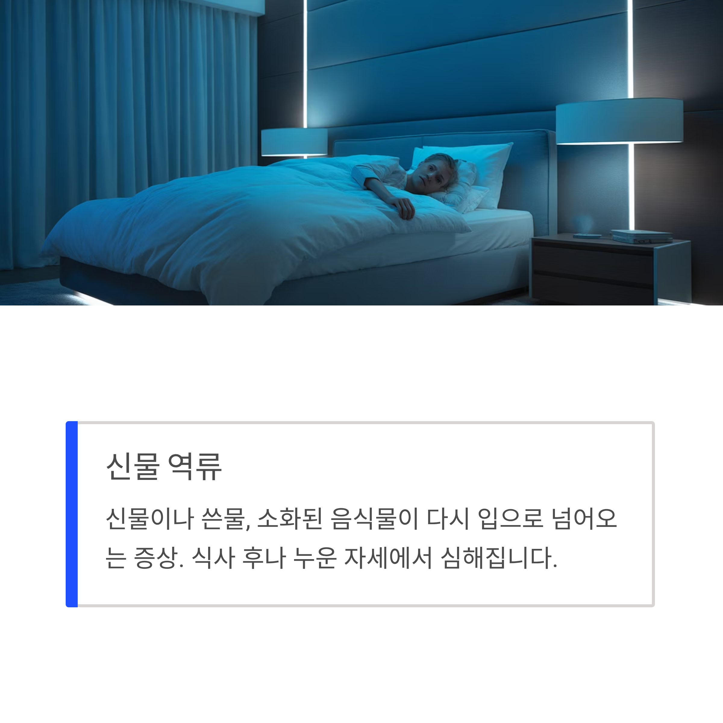 - 누운 자세: 중력의 영향으로 위산이 식도로 역류