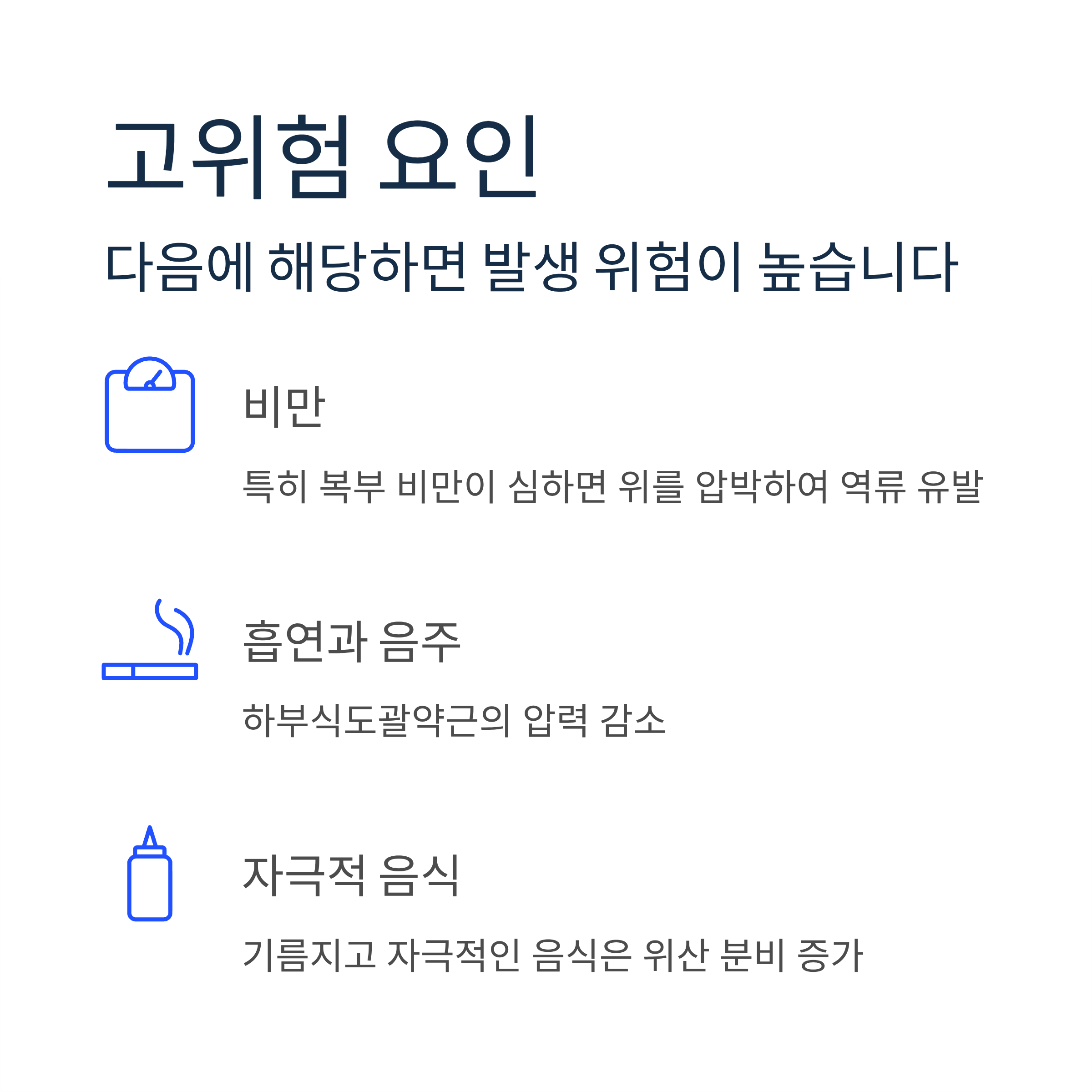 ⚠️ 다음에 해당하는 경우 역류성 식도염 발생 위험이 높습니다