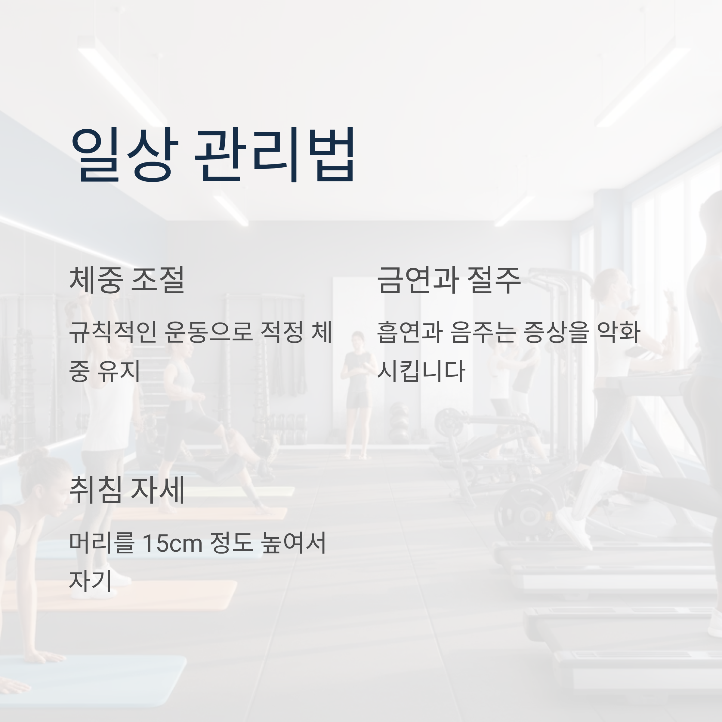 - 비만: 특히 복부 비만이 심하면 위를 압박하여 역류 유발