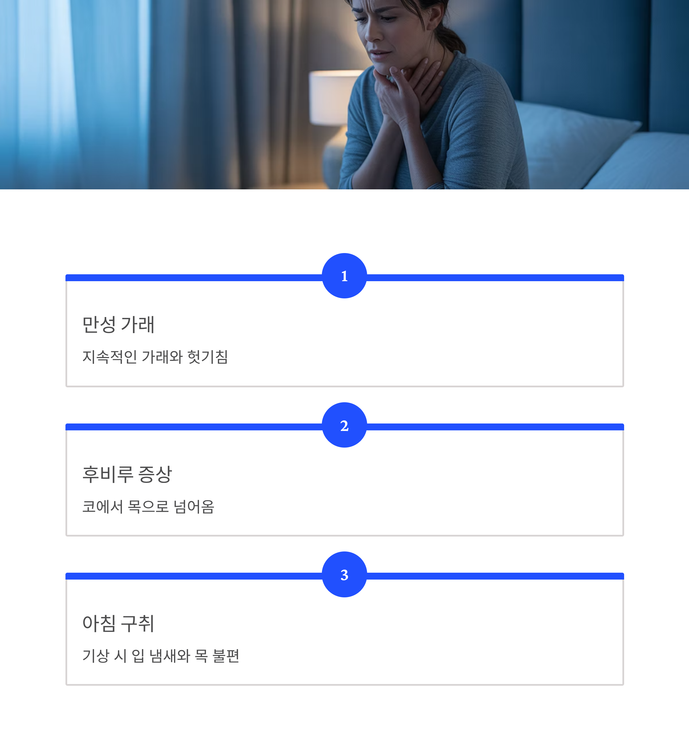 - 아침 구취 및 목 불편감