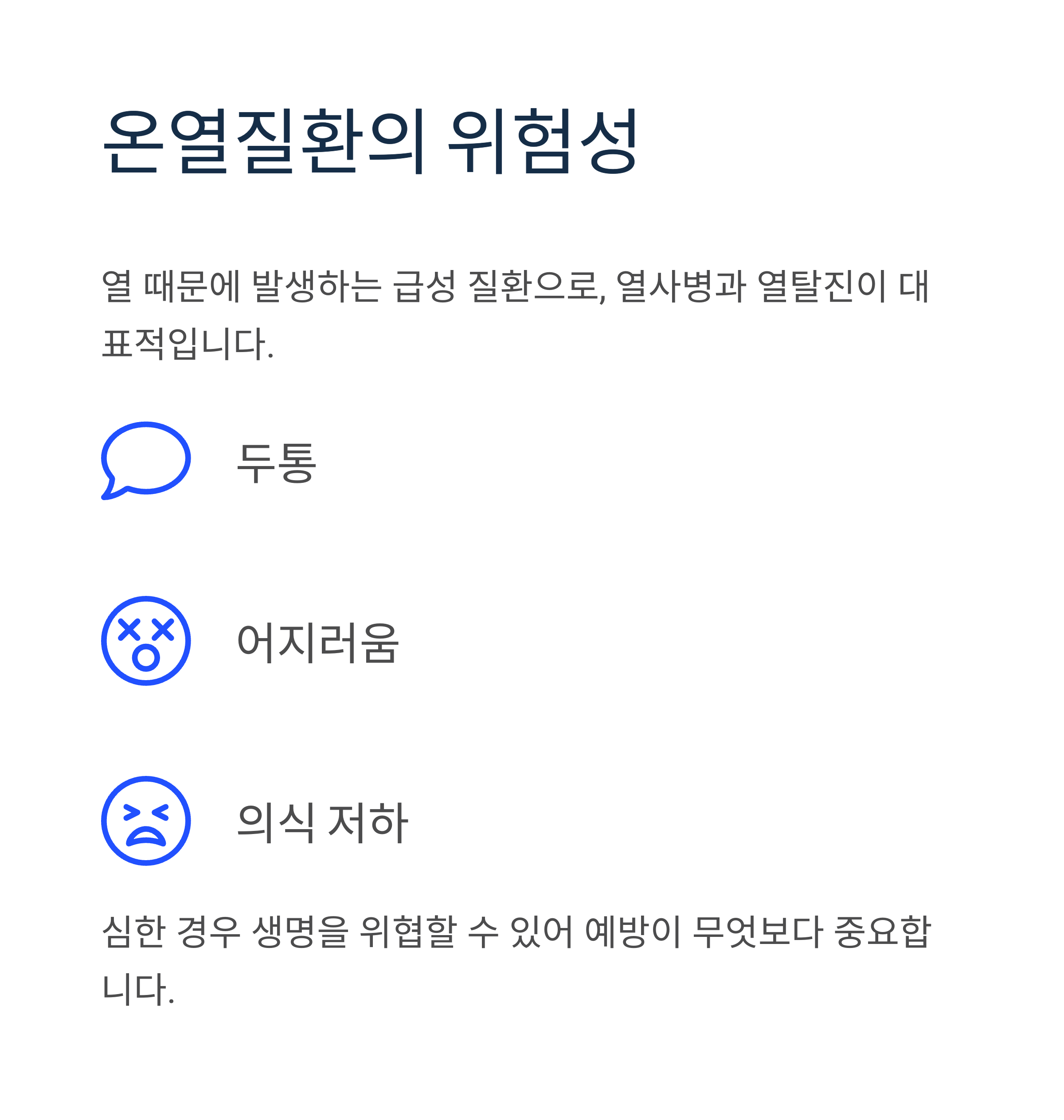 ⚠️고혈압이나 당뇨 등 만성질환을 앓고 있는 분들은 무리한 야외 활동을 자제해야 합니다. 온열질환에 더욱 취약하므로 특별한 주의가 필요합니다.
