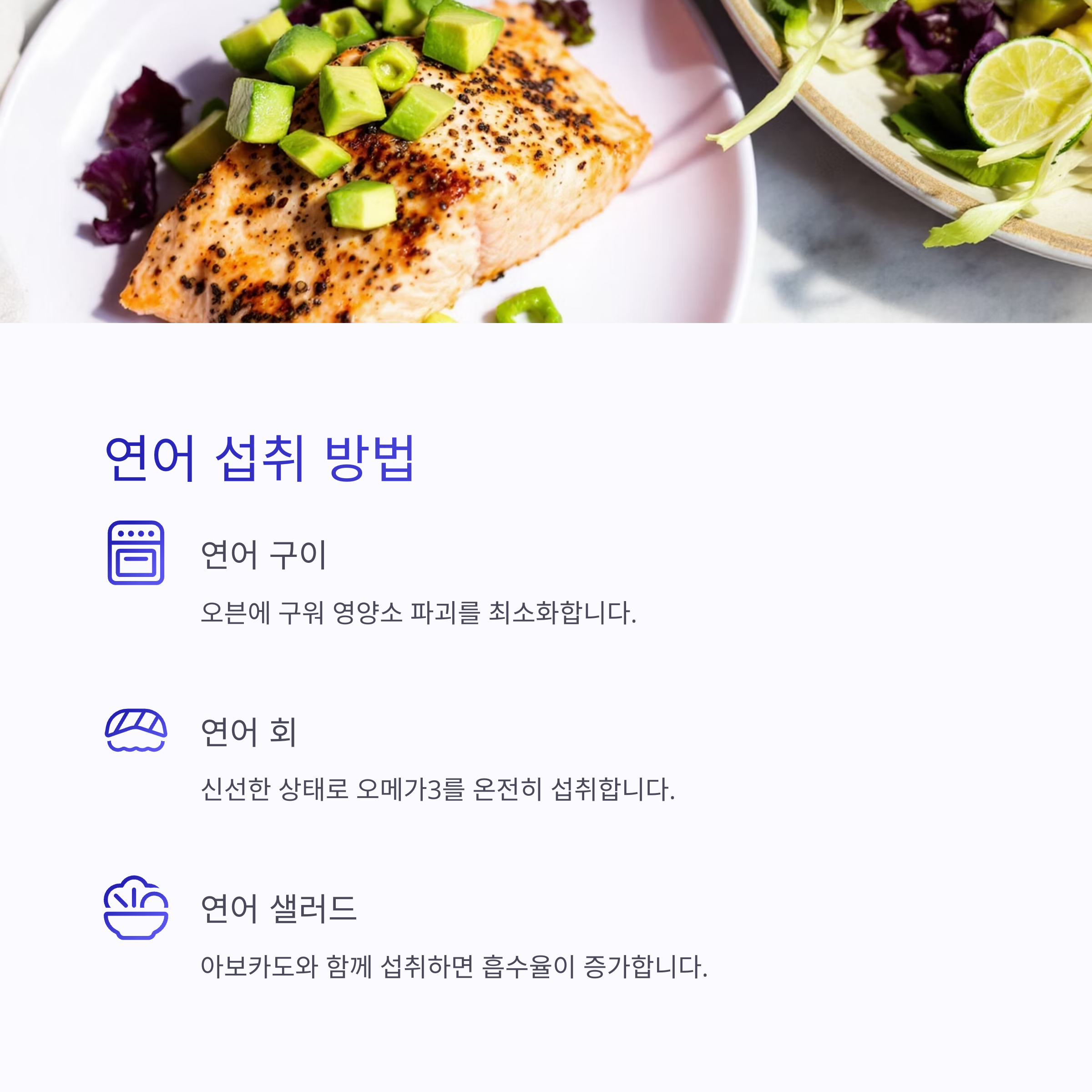 - 굽거나 찌는 조리법이 튀김보다 오메가3 보존에 유리