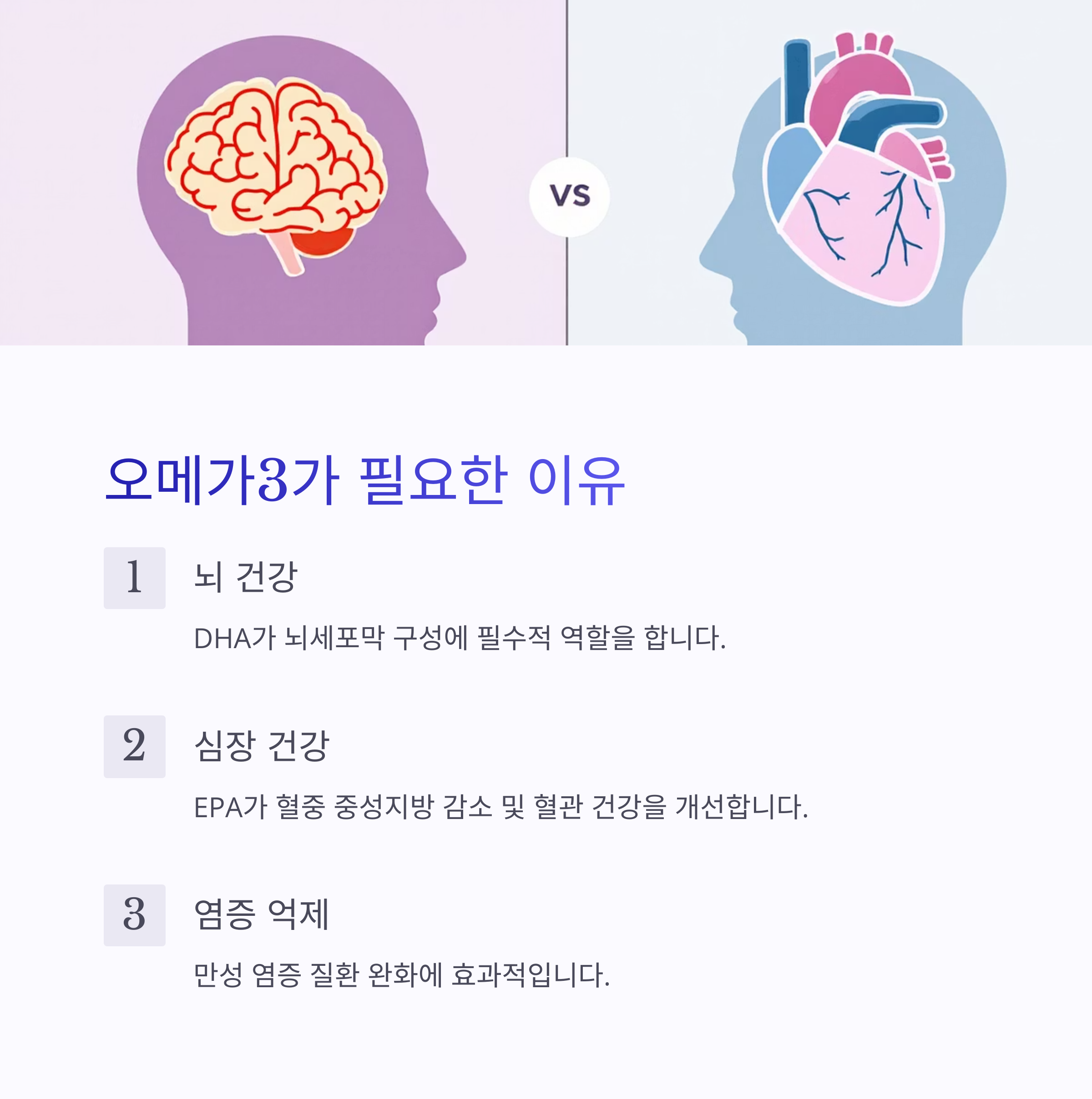 - 심장병 예방: EPA가 혈중 중성지방 감소 및 혈관 건강 개선