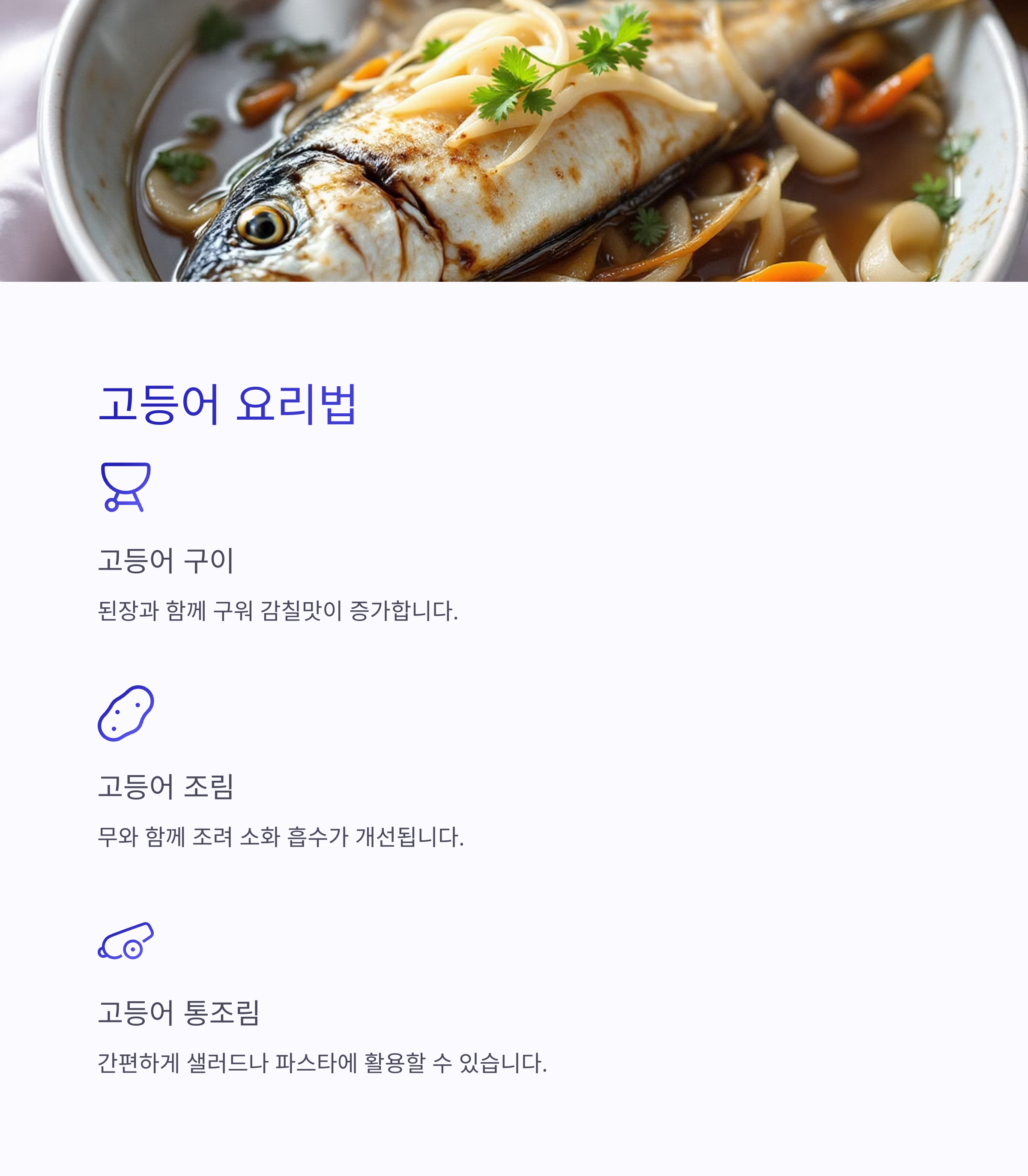 - 고등어 조림: 무와 함께 조려 소화 흡수 개선