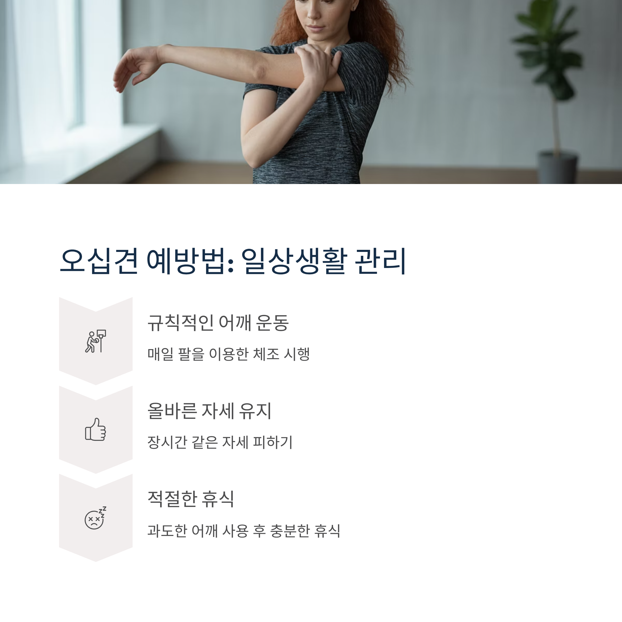 - 규칙적인 어깨 운동: 매일 규칙적으로 팔을 이용한 체조 시행