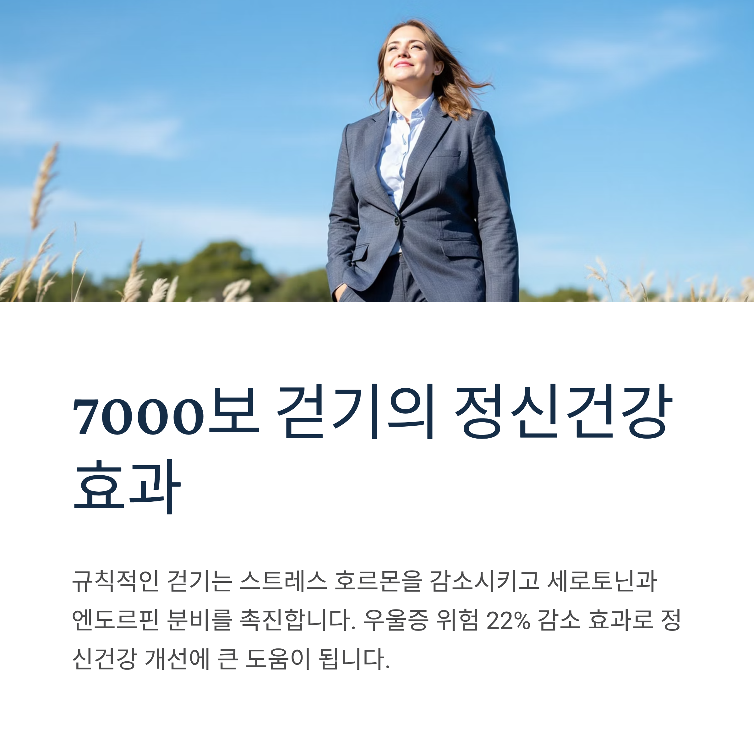 7000보 걷기는 면역 시스템을 강화하여 암 발생 위험을 6% 감소시킵니다. 또한 우울증 위험 22% 감소 효과로 정신건강까지 개선합니다.