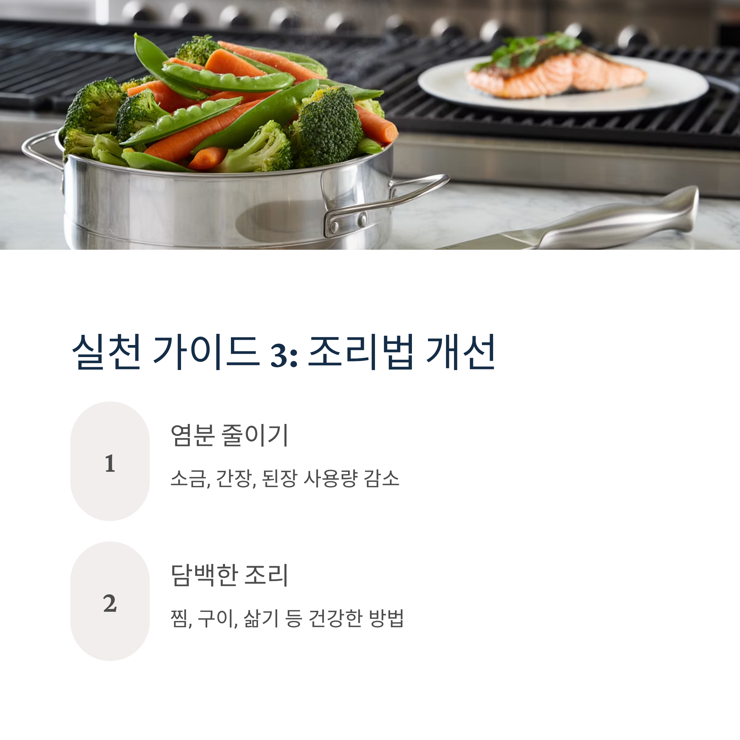 - 찜, 구이, 삶기 등 담백한 조리법 선택