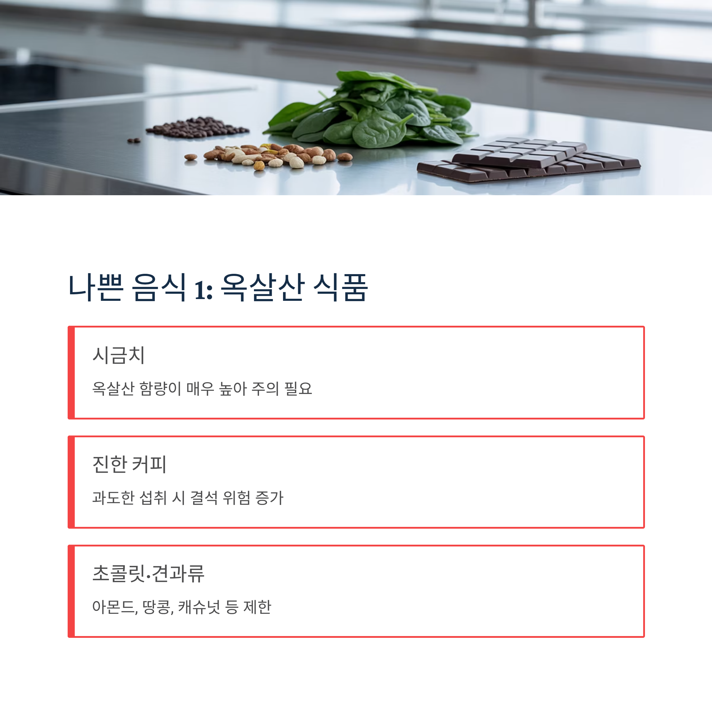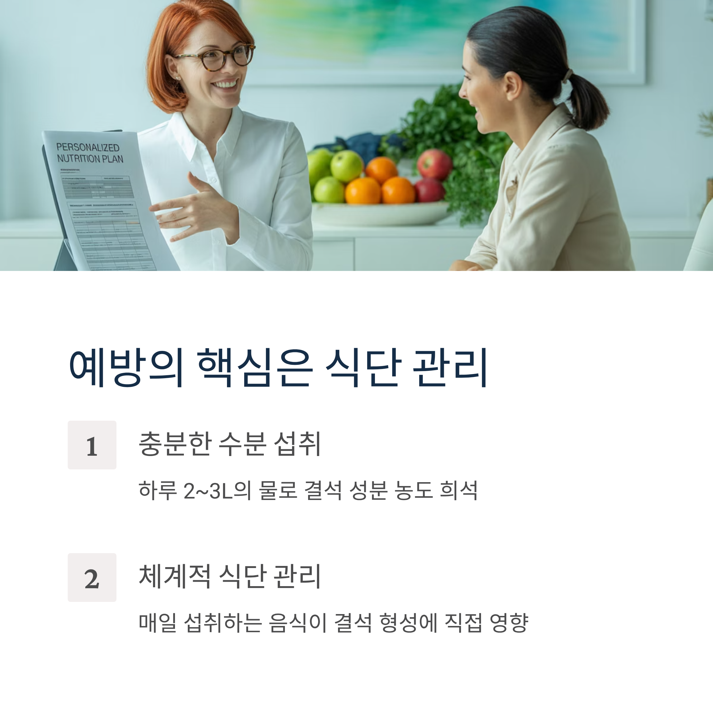 무엇보다 중요한 것은 개인의 결석 성분을 정확히 파악하고, 전문의와 상담을 통해 맞춤형 식단을 구성하는 것입니다. 작은 식습관의 변화가 평생 건강을 지키는 첫걸음이 될 수 있습니다.