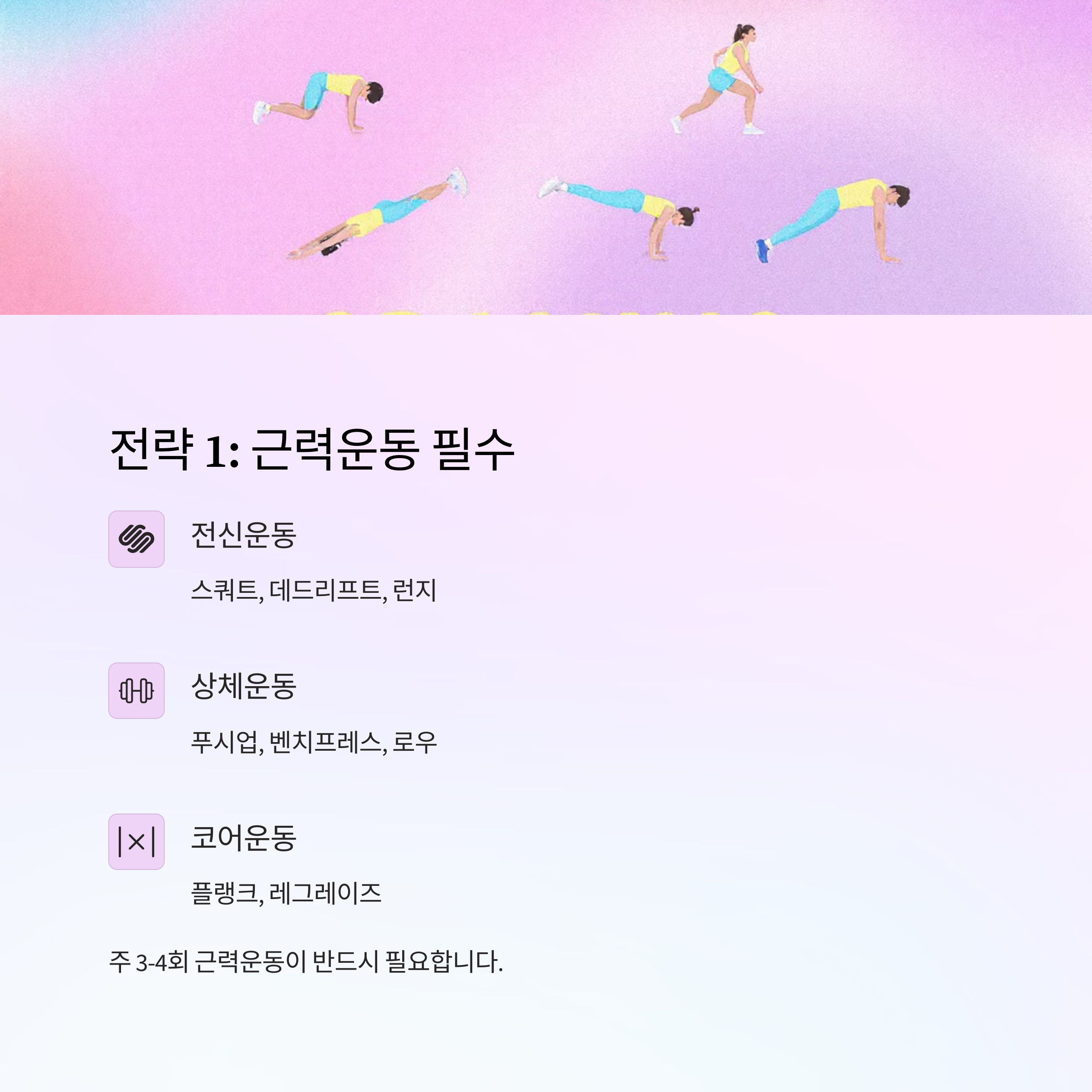 주 3-4회 근력운동이 반드시 필요합니다